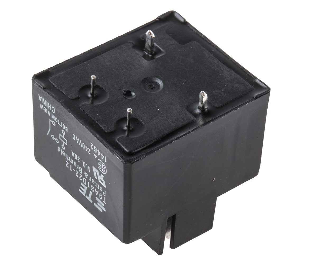 This is SPNO Non-Latching Relay PCB Mount 12V dc Coil 30 A manufactured by TE Connectivity. The manufacturer part number is T9AS1D22-12=RELAY,QC/PC,SEAL,P. It has a maximum operating temperature of +85°c. The product is available in pcb mount configuration. The product t9a, is a highly preferred choice for users. Latching Options - no. The coil voltage of the product is 12v dc. Its accurate length is 32.51mm. In addition, the height is 27.9mm. It is integrated with 30a switching current. The product comes in 27.4mm depth. Whereas, the minimum operating temperature of the product is -55°c. The contact is equipped with spst configuration. The product is made from sturdy silver alloy materials. It has equipped with 1 poles. The terminal is a through hole type. It holds up to 144ω coil resistance.