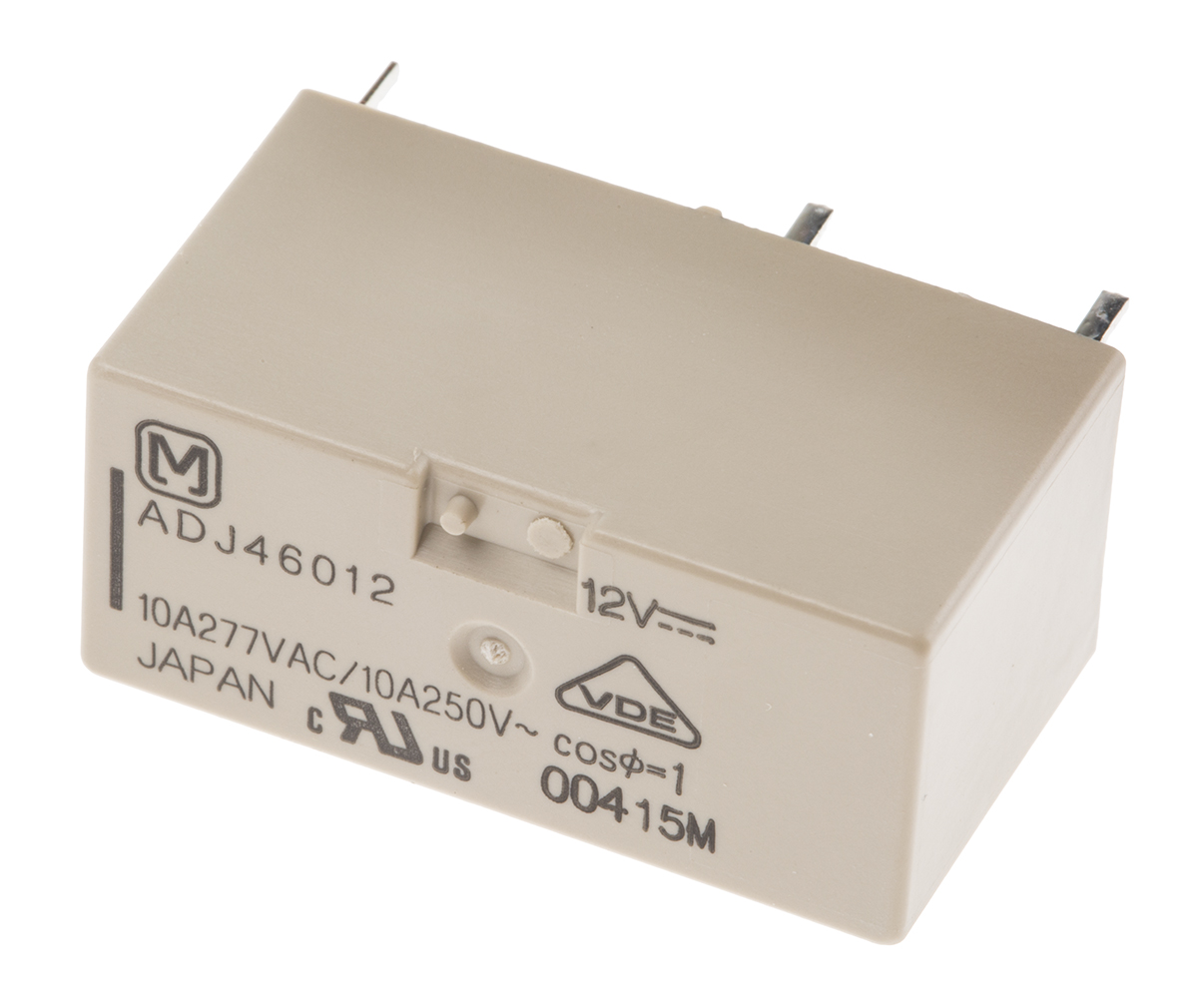 This is DPST PCB Mount Non-Latching Relay 12V dc Coil manufactured by Panasonic. The manufacturer part number is ADJ46012. It is capable of doing 100000 (electrical) cycles, 5000000 (mechanical) cycles in a lifetime . The product is available in pcb mount configuration. Robust coil power of 250mw. It has a maximum operating temperature of +70°c. Latching Options - no. The coil voltage of the product is 12v dc. The product comes in 13mm depth. In addition, the height is 16.5mm. It is integrated with 10a switching current. Applications Information involves power. Its accurate length is 29mm. It has a maximum AC switching voltage of 250v ac. Whereas, the minimum operating temperature of the product is -40°c. It also features an AC switching power of 4 kva. The contact is equipped with dpst configuration. The product has 4kvrms isolation coil to contact. The product is made from sturdy gold plated materials. It has equipped with 2 poles. The terminal is a through hole type. It holds up to 576ω coil resistance.