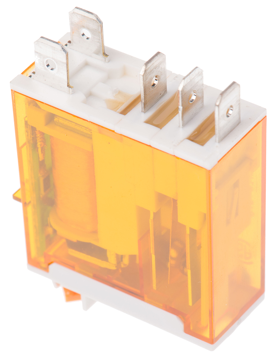 This is SPDT Non-Latching Relay PCB Mount 230V ac Coil 16 A manufactured by Finder. The manufacturer part number is 46.61.8.230.0054. The given dimensions of the product include 12.4x32.8x29mm. The coil voltage of the product is 230v ac. Applications Information involves general purpose. The terminal is a quick connect type. It holds up to 28000ω coil resistance. It is capable of doing 100000 cycles in a lifetime . Robust coil power of 1.2w. While it carries 16v of maximum DC switching voltage. The product has 6kv isolation coil to contact. It has a maximum operating temperature of +70°c. It is integrated with 16a switching current. Whereas, the minimum operating temperature of the product is -40°c. Latching Options - no. The contact is equipped with spdt configuration. The product comes in 12.4mm depth. The product is available in pcb mount configuration. The product 46 series, is a highly preferred choice for users. Its accurate length is 29mm. In addition, the height is 32.8mm. It has a maximum AC switching voltage of 250v ac. It also features an AC switching power of 4 kva. It has equipped with 1 poles. The product is made from sturdy silver alloy materials.