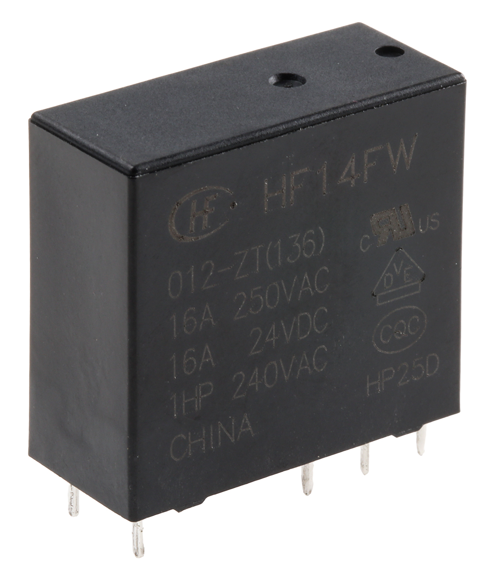 This is SPDT PCB Mount Non-Latching Relay 12V Coil 20 A Miniature Power Relay manufactured by RS Pro. The manufacturer part number is 800-4505. The coil voltage of the product is 12v dc. Applications Information involves power. The terminal is a through hole type. It holds up to 275ω coil resistance. It is capable of doing 100000 (electrical) operations, 100000000 (mechanical) operations in a lifetime . The product complies with all safety standards, such as cqc, culus, rohs compliant. Robust coil power of 530mw. While it carries 30v dc of maximum DC switching voltage. It bears a maximum 480 w of DC switching power. The product has 4kv ac isolation coil to contact. It has a maximum operating temperature of +85°c. It is integrated with 20a switching current. Latching Options - no. The contact is equipped with spdt configuration. The product comes in 13mm depth. The product is available in pcb mount configuration. Its accurate length is 29mm. In addition, the height is 26.5mm. It has a maximum AC switching voltage of 277v ac. Whereas, the minimum operating temperature of the product is -40°c. It also features an AC switching power of 5.54 kva. It has equipped with 1 poles. The product is made from sturdy silver alloy materials.