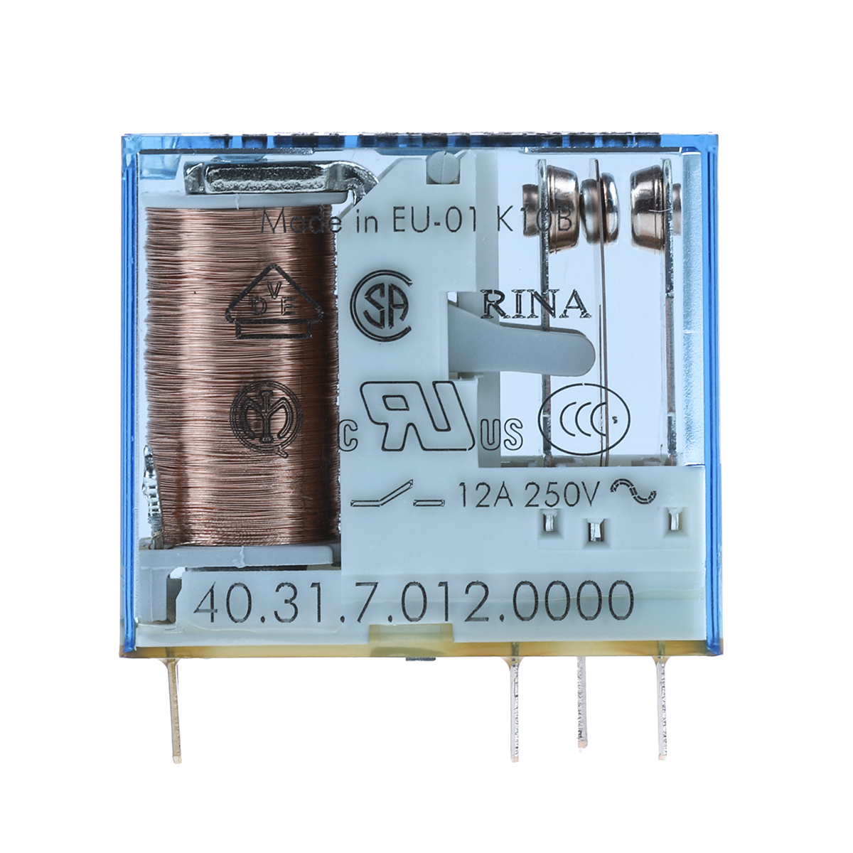 This is SPDT PCB Mount Non-Latching Relay 12V dc Coil manufactured by Finder. The manufacturer part number is 40.31.7.012.0000. It has a maximum operating temperature of +85°c. The product is available in pcb mount configuration. Robust coil power of 500mw. The product 40 series, is a highly preferred choice for users. Latching Options - no. The coil voltage of the product is 12v dc. Its accurate length is 29mm. In addition, the height is 25mm. It is integrated with 10a switching current. Applications Information involves pcb. The product comes in 12.4mm depth. It has a maximum AC switching voltage of 400v ac. Whereas, the minimum operating temperature of the product is -40°c. It also features an AC switching power of 2.5 kva. The contact is equipped with spdt configuration. The product has 6kv isolation coil to contact. The product is made from sturdy silver alloy materials. It has equipped with 1 poles. The terminal is a through hole type. It holds up to 300ω coil resistance.