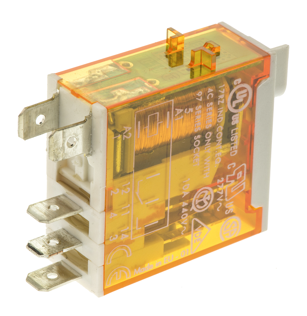 This is SPDT Non-Latching Relay PCB Mount 24V ac Coil 16 A manufactured by Finder. The manufacturer part number is 46.61.8.024.0054. The coil voltage of the product is 24v ac. It consists of single coils. Applications Information involves general purpose. The terminal is a quick connect type. It holds up to 320ω coil resistance. It is capable of doing 100000 cycles in a lifetime . The product complies with all safety standards, such as curus, eac. Robust coil power of 1.2w. While it carries 125v dc of maximum DC switching voltage. The product has 6kv isolation coil to contact. It has a maximum operating temperature of +70°c. It is integrated with 16a switching current. It has a maximum 25 a switching current AC . Whereas, the minimum operating temperature of the product is -40°c. Latching Options - no. The contact is equipped with spdt configuration. The product comes in 12.4mm depth. The product is available in pcb mount configuration. The product 46 series, is a highly preferred choice for users. Its accurate length is 29mm. In addition, the height is 32.8mm. It has a maximum AC switching voltage of 250v ac. It also features an AC switching power of 4 kva. It has equipped with 1 poles. The product is made from sturdy silver alloy materials.