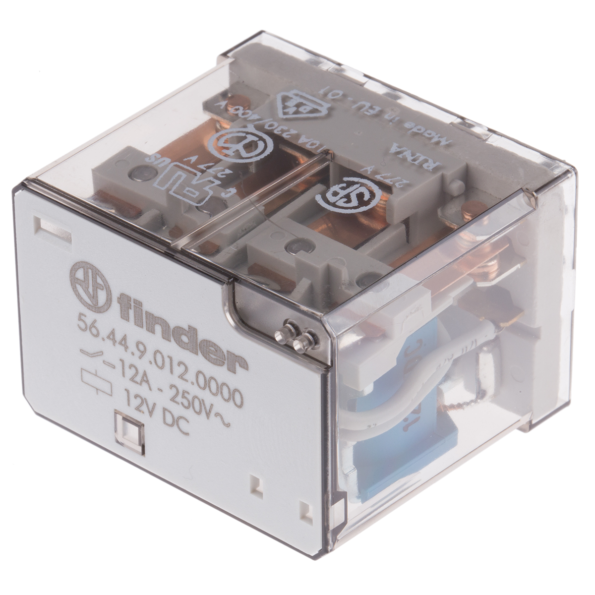 This is 4PDT Non-Latching Relay PCB Mount 12V dc Coil 12 A manufactured by Finder. The manufacturer part number is 56.44.9.012.0000. The coil voltage of the product is 12v dc. Applications Information involves power. The terminal is a through hole type. It holds up to 123ω coil resistance. Robust coil power of 1.3w. The product has 5kv isolation coil to contact. It has a maximum operating temperature of +70°c. It is integrated with 12a switching current. Latching Options - no. The contact is equipped with 4pdt configuration. Its accurate length is 40.8mm. The product is available in pcb mount configuration. The product 56 series, is a highly preferred choice for users. The product comes in 27.7mm depth. In addition, the height is 37.1mm. It has a maximum AC switching voltage of 250v ac. Whereas, the minimum operating temperature of the product is -40°c. It also features an AC switching power of 3 kva. It has equipped with 4 poles. The product is made from sturdy silver alloy materials.