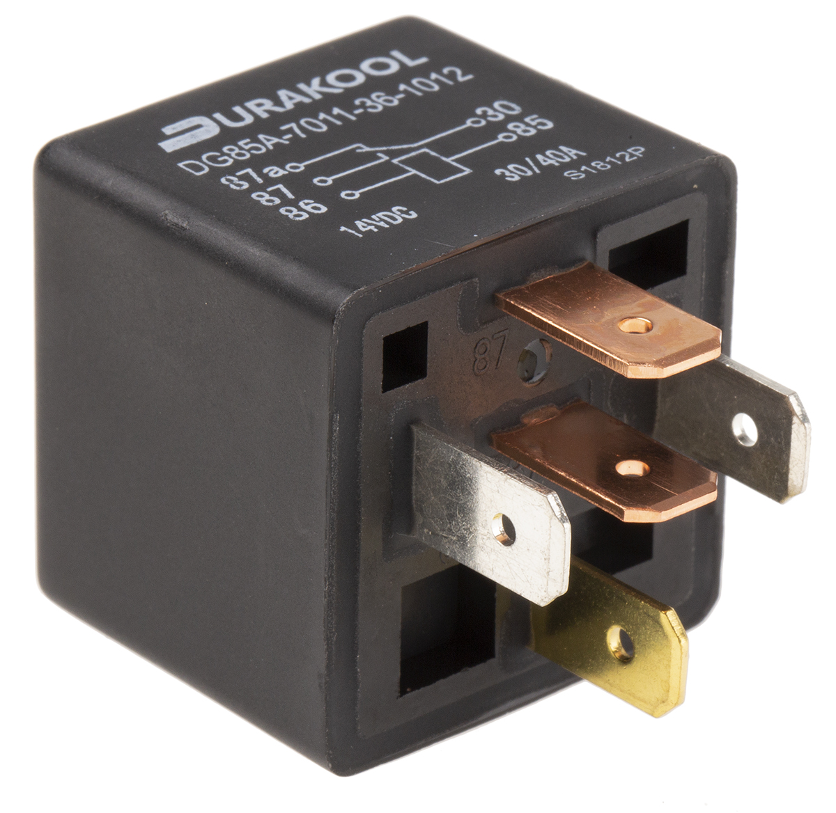 This is SPDT Plug In Non-Latching Relay 120 A 12V dc For Use In Automotive Industrial Applications manufactured by Durakool. The manufacturer part number is DG85A-7011-36-1012. It is capable of doing 10000000 operations in a lifetime . While it carries 30v dc of maximum DC switching voltage. The product is available in plug in configuration. Robust coil power of 1.81w. It has a maximum operating temperature of +125°c. Latching Options - no. The coil voltage of the product is 12v dc. The product comes in 28.3mm depth. In addition, the height is 25mm. It is integrated with 40a switching current. Applications Information involves automotive, industrial. Its accurate length is 28.3mm. Whereas, the minimum operating temperature of the product is -40°c. The contact is equipped with spdt configuration. The product has 500vrms isolation coil to contact. The product is made from sturdy agsnoino materials. It has equipped with 1 poles. The terminal is a quick connect type. It holds up to 90ω coil resistance.