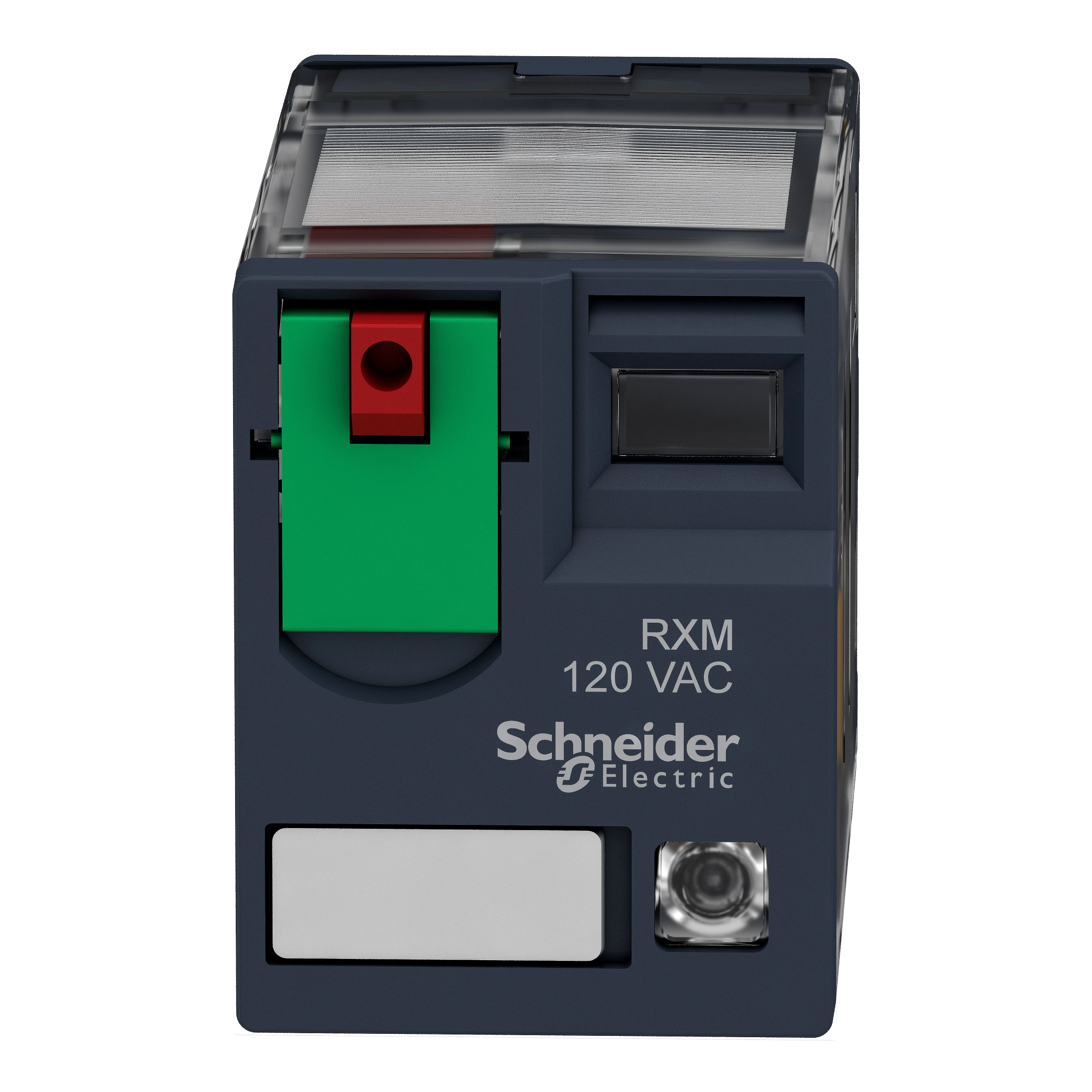This is DPDT Non-Latching Relay Plug In 120V ac Coil 12 A manufactured by Schneider Electric. The manufacturer part number is RXM2AB2F7. The coil voltage of the product is 120v ac. The terminal is a plug in type. It holds up to 3630ω coil resistance. It is capable of doing 100000 cycles in a lifetime . The product complies with all safety standards, such as ce, csa, en/iec, gost, lloyd's, reach, rohs compliant, ul. Robust coil power of 1.2w. It bears a maximum 336 w of DC switching power. It has a maximum operating temperature of +55°c. It is integrated with 12a switching current. Whereas, the minimum operating temperature of the product is -40°c. Latching Options - no. The contact is equipped with dpdt configuration. The product comes in 47.7mm depth. Better World Verification Options - green premium. Is it a better world product? yes. The product is available in plug in configuration. The product harmony relay rxm, is a highly preferred choice for users. Its accurate length is 21mm. In addition, the height is 27mm. It has a maximum AC switching voltage of 250v. It also features an AC switching power of 3 kva. It has equipped with 2 poles. The product is made from sturdy silver alloy materials.