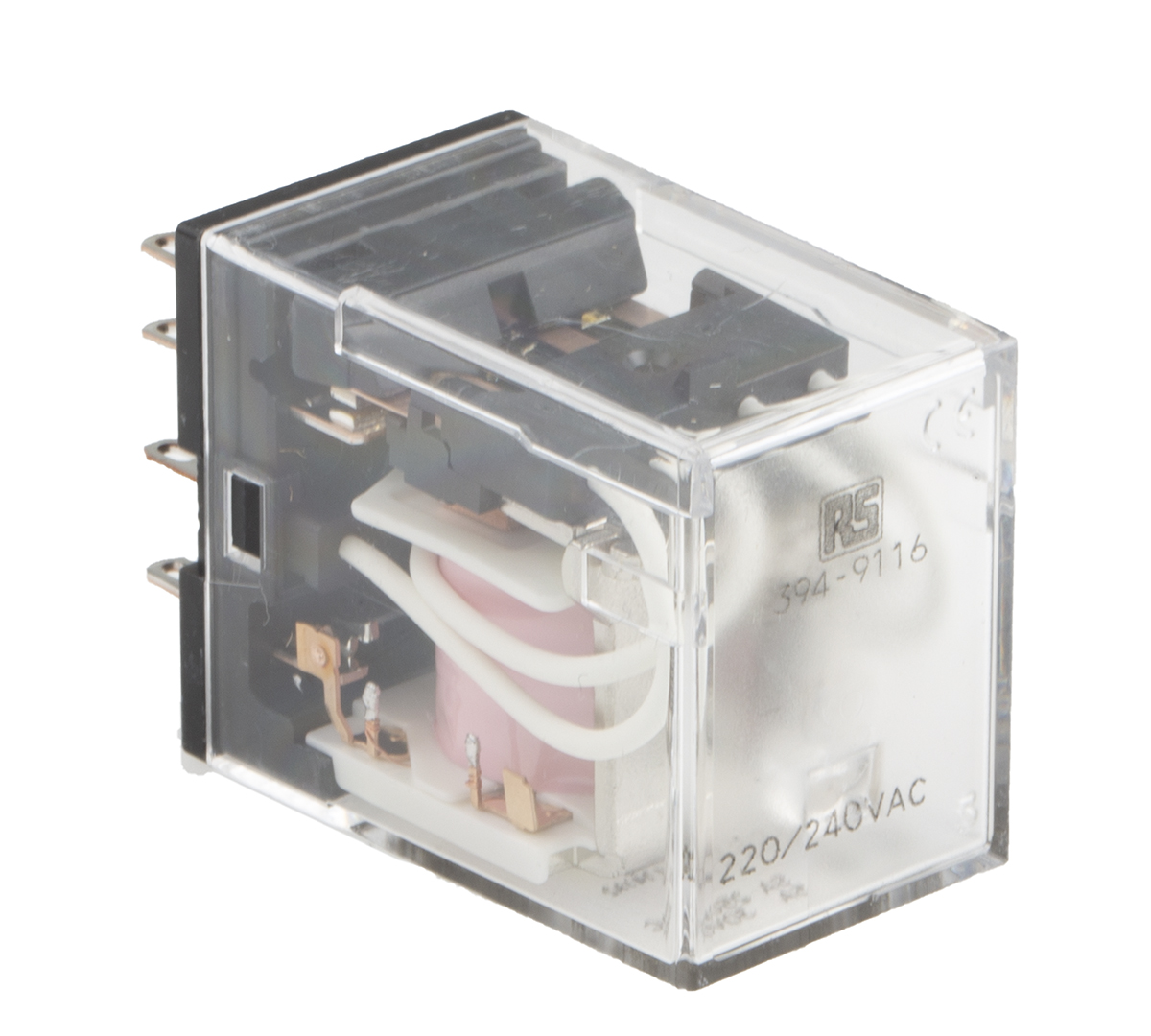 This is 4PDT Non-Latching Relay Plug In 240V ac Coil 5 A Non-Latching Relay manufactured by RS Pro. The manufacturer part number is 394-9116. The coil voltage of the product is 240v ac. Applications Information involves power. The terminal is a through hole type. It holds up to 18790ω coil resistance. It is capable of doing 200000 (electrical) cycles, 50000000 (mechanical) cycles in a lifetime . The product complies with all safety standards, such as ce, csa, rohs compliant. Robust coil power of 1.1w. While it carries 125v dc of maximum DC switching voltage. It bears a maximum 150 w of DC switching power. The product has 2kv ac isolation coil to contact. It has a maximum operating temperature of +70°c. It is integrated with 5a switching current. Latching Options - no. The contact is equipped with 4pdt configuration. The product comes in 21.5mm depth. The product is available in plug in configuration. Its accurate length is 28mm. In addition, the height is 36mm. It has a maximum AC switching voltage of 250v ac. Whereas, the minimum operating temperature of the product is -55°c. It also features an AC switching power of 1.25 kva. It has equipped with 4 poles. The product is made from sturdy gold plated materials.