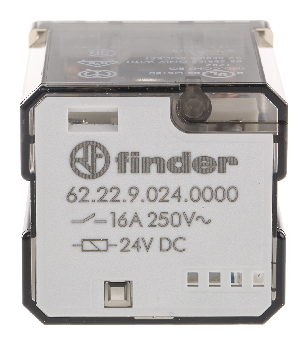 This is DPDT Non-Latching Relay PCB Mount 24V Coil 16 A manufactured by Finder. The manufacturer part number is 62.22.9.024.0000. It is capable of doing 100 x 10³ cycles in a lifetime . It has a maximum operating temperature of +70°c. The product is available in pcb mount configuration. Robust coil power of 1.3w. The product 62 series, is a highly preferred choice for users. Latching Options - no. The coil voltage of the product is 24v dc. The product comes in 49.1mm depth. In addition, the height is 35.8mm. Applications Information involves power. Its accurate length is 38.2mm. Whereas, the minimum operating temperature of the product is -40°c. The contact is equipped with dpdt configuration. The product is made from sturdy silver alloy materials. It has equipped with 2 poles. It is integrated with 16a switching current. It holds up to 445ω coil resistance.