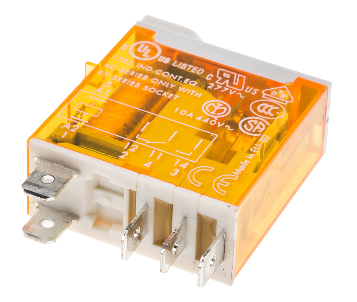 This is SPDT Non-Latching Relay Plug In 110V ac Coil 25 A manufactured by Finder. The manufacturer part number is 46.61.8.110.0040. The given dimensions of the product include 12.4x32.8x29mm. The coil voltage of the product is 110v ac. Applications Information involves general purpose. The terminal is a quick connect type. It holds up to 6900ω coil resistance. It is capable of doing 100000 cycles in a lifetime . Robust coil power of 1.2w. While it carries 16v of maximum DC switching voltage. The product has 6kv isolation coil to contact. It has a maximum operating temperature of +70°c. It is integrated with 25a switching current. Whereas, the minimum operating temperature of the product is -40°c. Latching Options - no. The contact is equipped with spdt configuration. The product comes in 12.4mm depth. The product is available in plug in configuration. The product 46 series, is a highly preferred choice for users. Its accurate length is 29mm. In addition, the height is 32.8mm. It has a maximum AC switching voltage of 250v ac. It also features an AC switching power of 4 kva. It has equipped with 1 poles. The product is made from sturdy silver alloy materials.