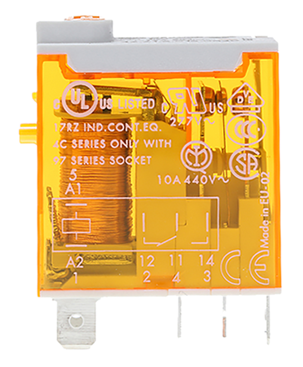 This is 12V ac Coil Non-Latching Relay SPDT 25A Switching Current Plug In Single Pole manufactured by Finder. The manufacturer part number is 46.61.8.012.0040. It has a maximum operating temperature of +70°c. The product is available in plug in configuration. Robust coil power of 1.2w. The product 46 series, is a highly preferred choice for users. Latching Options - no. The coil voltage of the product is 12v ac. Its accurate length is 29mm. In addition, the height is 32.8mm. It is integrated with 25a switching current. Applications Information involves general purpose. The product comes in 12.4mm depth. It has a maximum AC switching voltage of 440v ac. Whereas, the minimum operating temperature of the product is -40°c. It also features an AC switching power of 4 kva. The contact is equipped with spdt configuration. The product has 6kv isolation coil to contact. The product is made from sturdy silver alloy materials. It has equipped with 1 poles. The terminal is a quick connect type. It holds up to 80ω coil resistance.