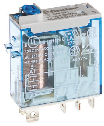 This is 12V ac Coil Non-Latching Relay SPDT 25A Switching Current Plug In Single Pole manufactured by Finder. The manufacturer part number is 46.61.8.012.0040. It has a maximum operating temperature of +70°c. The product is available in plug in configuration. Robust coil power of 1.2w. The product 46 series, is a highly preferred choice for users. Latching Options - no. The coil voltage of the product is 12v ac. Its accurate length is 29mm. In addition, the height is 32.8mm. It is integrated with 25a switching current. Applications Information involves general purpose. The product comes in 12.4mm depth. It has a maximum AC switching voltage of 440v ac. Whereas, the minimum operating temperature of the product is -40°c. It also features an AC switching power of 4 kva. The product has 6kv isolation coil to contact. The product is made from sturdy silver alloy materials. It has equipped with 1 poles. The terminal is a quick connect type. The contact is equipped with spdt configuration. It holds up to 80ω coil resistance.