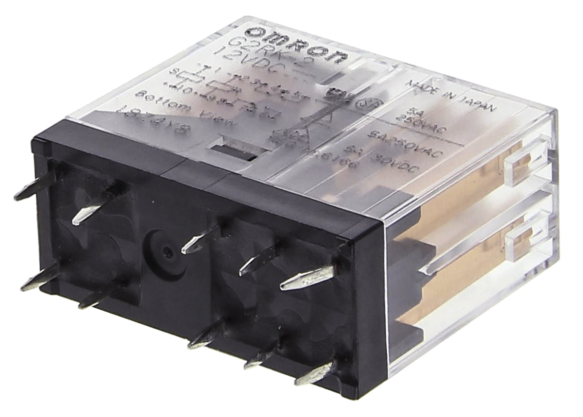 This is DPDT 12V dc Latching Relay 5 A PCB Mount manufactured by Omron. The manufacturer part number is G2RK-2 DC12. While it carries 125v dc of maximum DC switching voltage. The given dimensions of the product include 29 x 25.5 x 13mm. The product is available in pcb mount configuration. Whereas, the minimum operating temperature of the product is -40°c. Latching Options - yes. The coil voltage of the product is 12v dc. Its accurate length is 29mm. In addition, the height is 25.5mm. It is integrated with 5a switching current. Applications Information involves power. The product comes in 13mm depth. It has a maximum AC switching voltage of 380v ac. It bears a maximum 90 w of DC switching power. The contact is equipped with dpdt configuration. It also features an AC switching power of 750va. The product is made from sturdy silver materials. It has a maximum operating temperature of +70°c. The terminal is a through hole type. It holds up to 170 (set coil) ω, 240 (reset coil) ω coil resistance.
