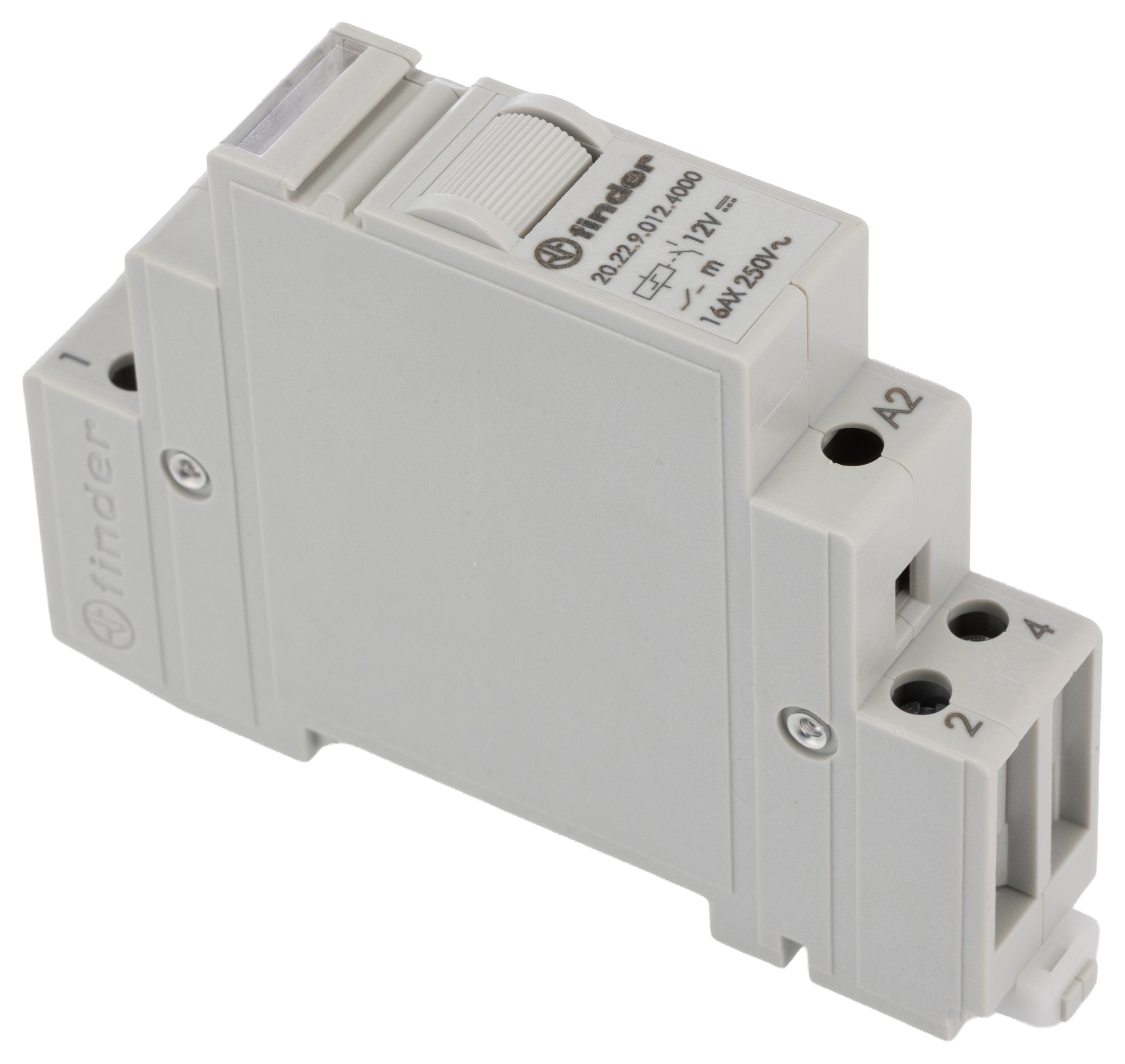 This is DPST 12V dc Latching Relay 16A DIN Rail manufactured by Finder. The manufacturer part number is 20.22.9.012.4000. It is capable of doing 100000 cycles in a lifetime . While it carries 110v dc of maximum DC switching voltage. The given dimensions of the product include 17.4 x 84 x 58.4mm. The product is available in din rail configuration. Robust coil power of 6.5w. The product 20, is a highly preferred choice for users. It is integrated with 16a switching current. The coil voltage of the product is 12v dc. It consists of single coils. The contact is equipped with dpst configuration. It has a maximum operating temperature of +40°c. It has a maximum AC switching voltage of 400v ac. Whereas, the minimum operating temperature of the product is -40°c. The product has 4kv isolation coil to contact. It has a maximum 30 a switching current AC . It has equipped with 2 poles. The terminal is a screw type. The product is made from sturdy silver alloy materials.