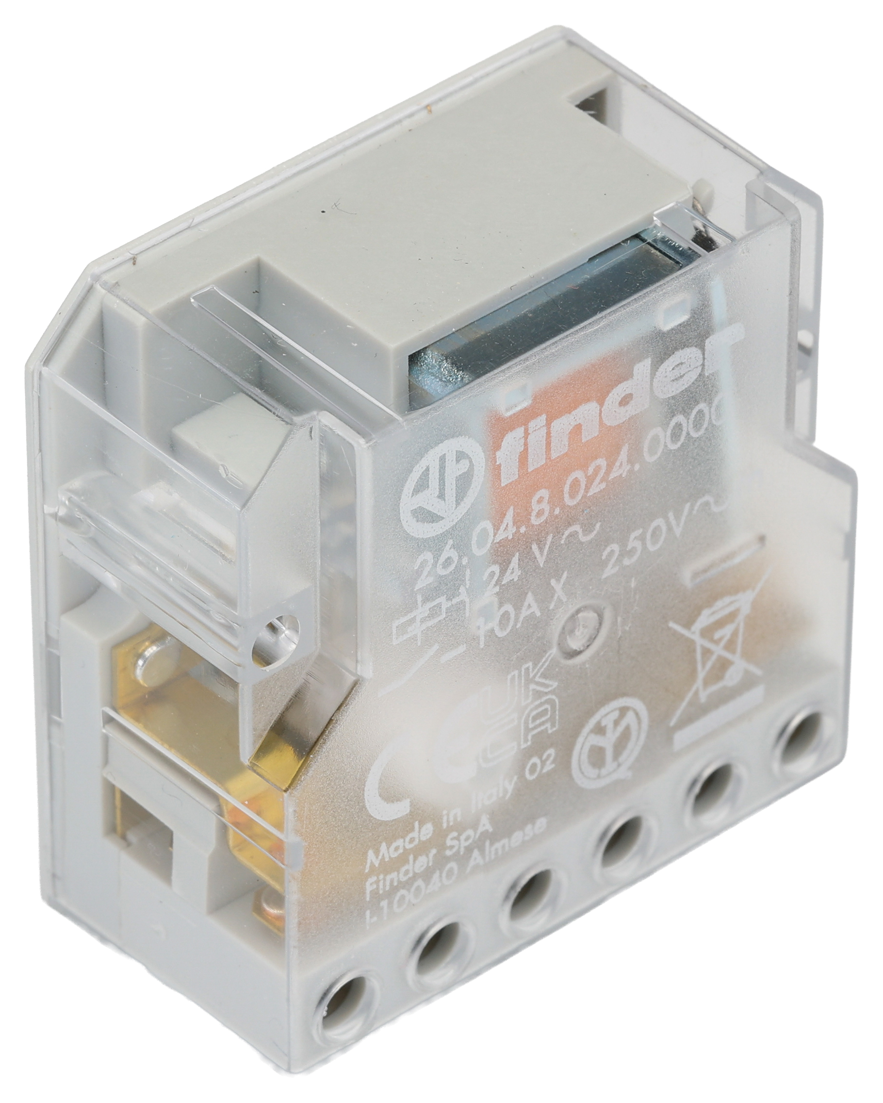 This is 24V Coil Non-Latching Relay 10A Switching Current Panel Mount 260480240000 manufactured by Finder. The manufacturer part number is 26.04.8.024.0000. The product is available in panel mount configuration. Robust coil power of 4.5w. The product 26 series, is a highly preferred choice for users. It is integrated with 10a switching current. The coil voltage of the product is 24v ac. The contact is equipped with dpst configuration. It holds up to 70 ω coil resistance.