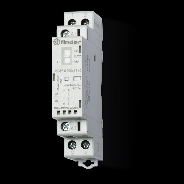 This is 22 Contactor 24 V Coil 2 Pole 25 A 2.2 W 2NO manufactured by Finder. The manufacturer part number is 223200241340.