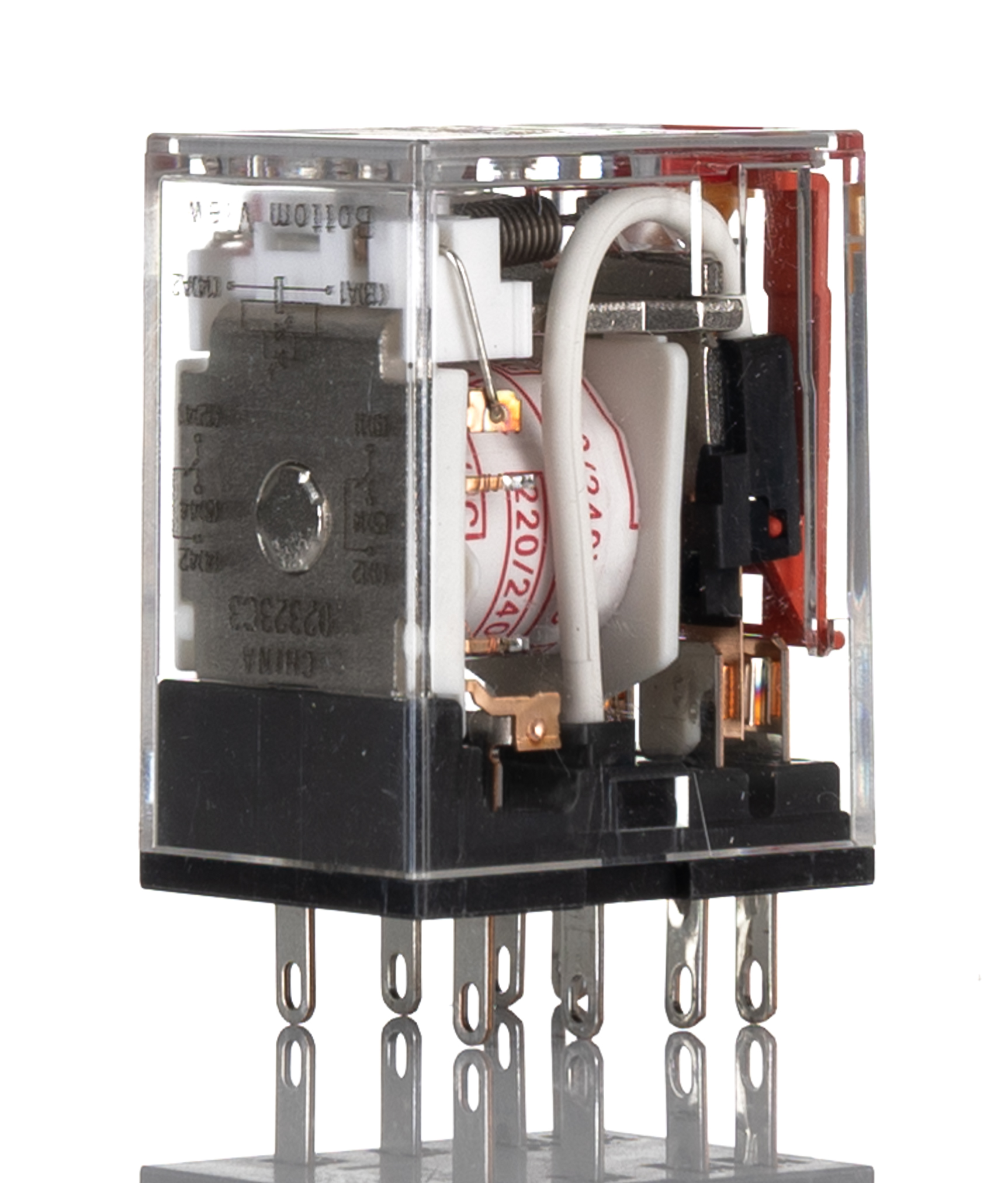 This is Plug In Latching Power Relay 220 → 240V ac Coil 10A Switching Current DPDT manufactured by Omron. The manufacturer part number is MY2IN-GS-R AC220/240. The given dimensions of the product include 28 x 21.5 x 36mm. The coil voltage of the product is 220 → 240v ac. It consists of single coils. Applications Information involves general purpose, industrial. The terminal is a plug in type. It holds up to 15.92 kω coil resistance. It is capable of doing 500000 cycles in a lifetime . The product complies with all safety standards, such as cqc, csa, iec, ul. Robust coil power of 900mw. While it carries 220v of maximum DC switching voltage. It bears a maximum 10000 mw of DC switching power. The product has 2kv ac isolation coil to contact. It has a maximum operating temperature of +70°c. It is integrated with 10a switching current. It has a maximum 10 a switching current AC . Latching Options - yes. The contact is equipped with dpdt configuration. The product comes in 36mm depth. The product is available in plug in configuration. Furthermore, the product is 21.5mm wide. The product my, is a highly preferred choice for users. Its accurate length is 28mm. In addition, the height is 36mm. It has a minimum 10 a DC switching current . It has a maximum AC switching voltage of 250v. Whereas, the minimum operating temperature of the product is -55°c. It also features an AC switching power of 10 va. It has equipped with 2 poles. The product is made from sturdy silver materials.