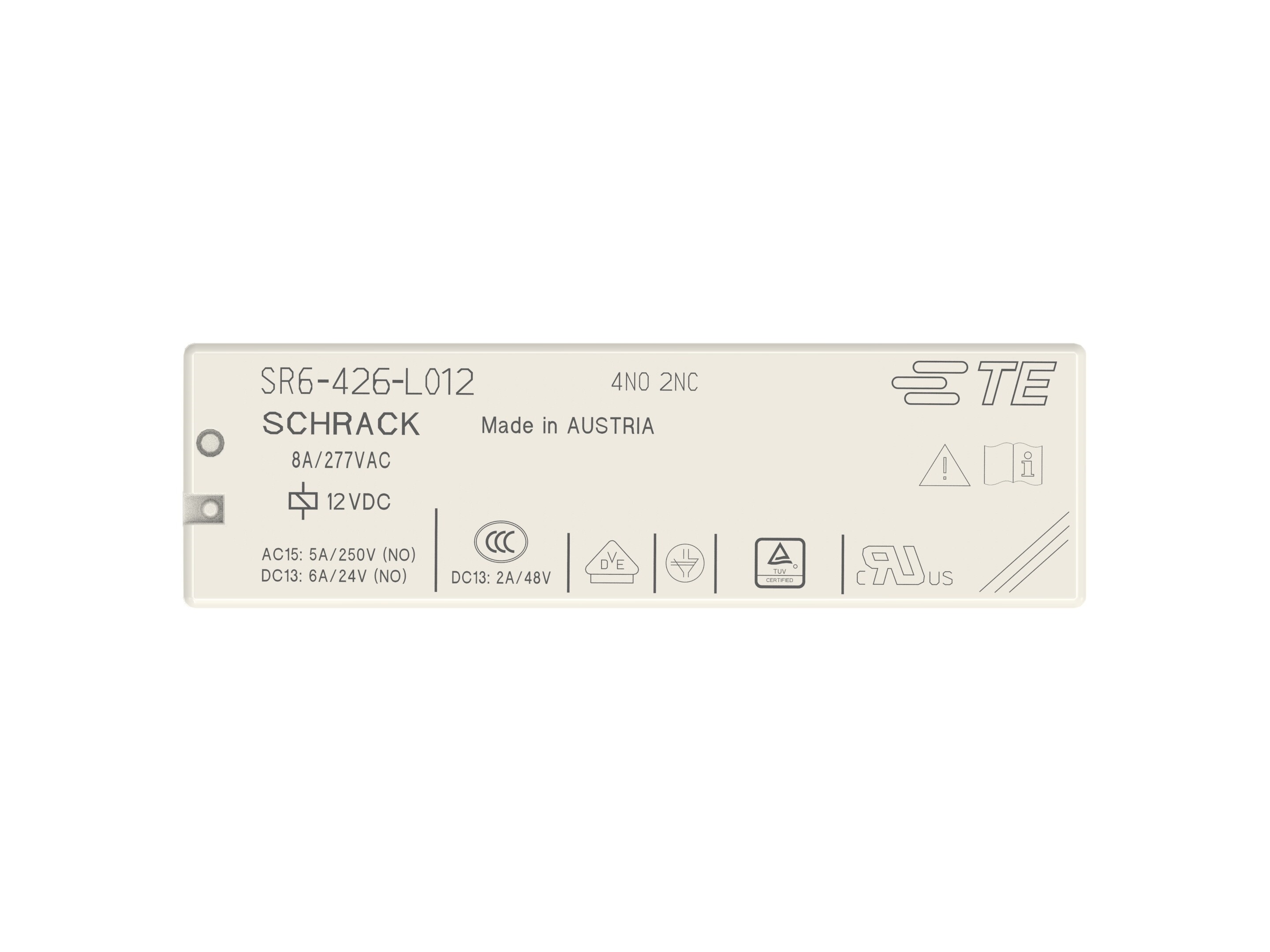This is PCB Mount Force Guided Relay 12V dc Coil 8A Switching Current 4NO/2NC manufactured by TE Connectivity. The manufacturer part number is 2-1558737-4. It has a maximum operating temperature of +85°c. The given dimensions of the product include 55 x 16.5 x 15.5mm. The product is available in pcb mount configuration. Robust coil power of 700mw. The product schrack sr6, is a highly preferred choice for users. It is integrated with 8a switching current. The coil voltage of the product is 12v dc. In addition, the height is 15.7mm. Furthermore, the product is 16.5mm wide. Its accurate length is 55mm. It has a maximum AC switching voltage of 400v ac. Whereas, the minimum operating temperature of the product is -40°c. The product is made from sturdy agsno2+au materials. It has equipped with 6 poles. The terminal is a through hole type. The contact is equipped with 4no/2nc configuration. It holds up to 205 o ω coil resistance.