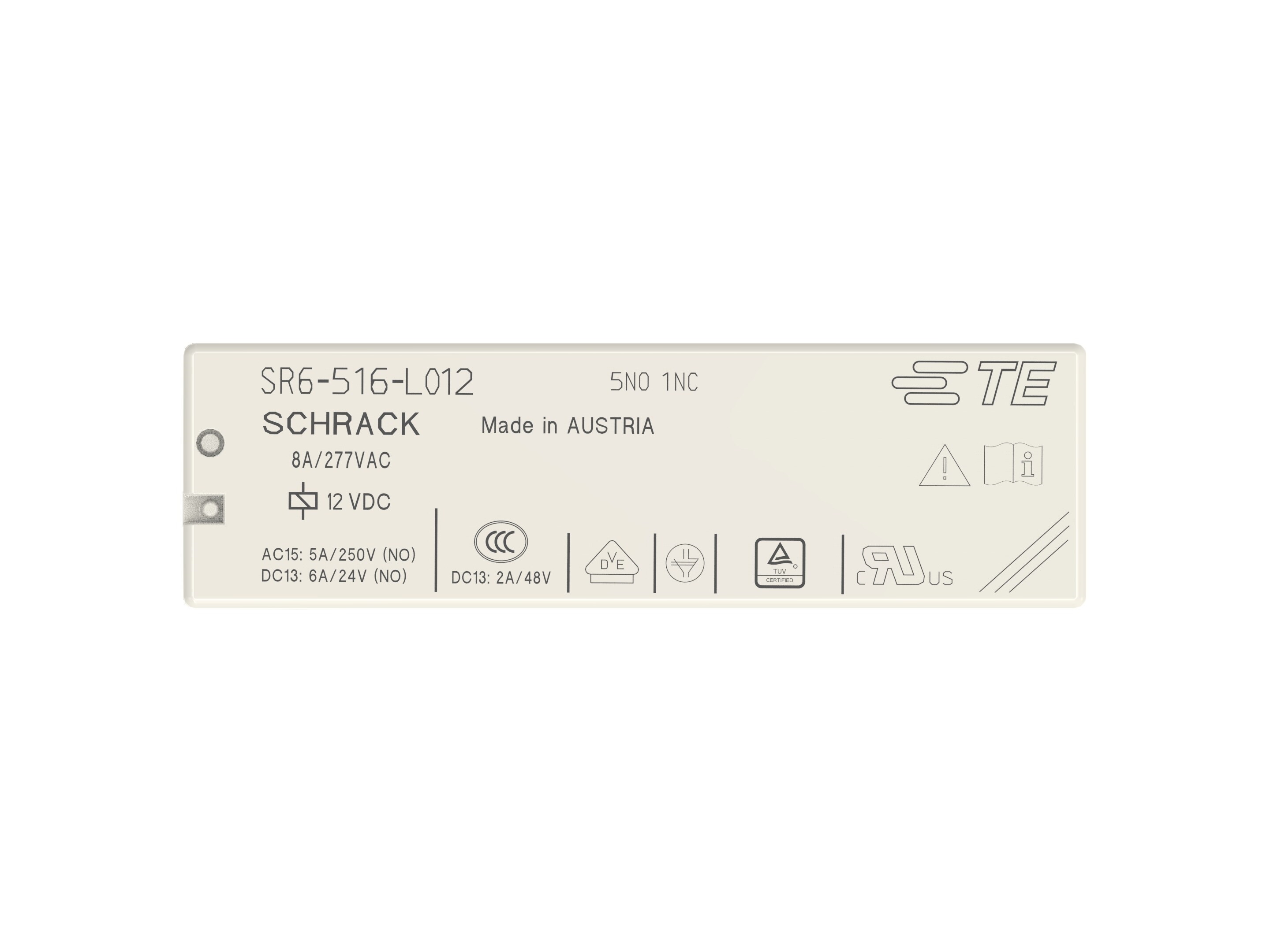 This is PCB Mount Force Guided Relay 12V dc Coil 8A Switching Current 5PDT manufactured by TE Connectivity. The manufacturer part number is 2-1558738-4. While it carries 300v dc of maximum DC switching voltage. The product is available in pcb mount configuration. Robust coil power of 700mw. The product schrack sr6, is a highly preferred choice for users. It is integrated with 8a switching current. The coil voltage of the product is 12v dc. The contact is equipped with 5pdt configuration. The product is made from sturdy agsno2+au materials. It has equipped with 6 poles. The terminal is a through hole type. It holds up to ω coil resistance.