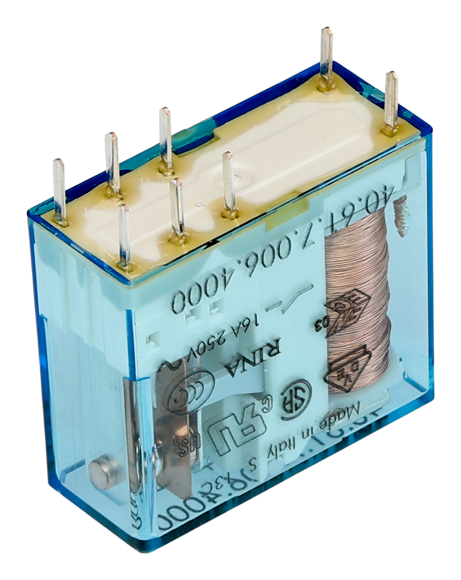 This is PCB Mount Power Relay 6V dc Coil 16A Switching Current SPDT manufactured by Finder. The manufacturer part number is 406170064000. It is capable of doing 100000 cycles in a lifetime . While it carries 125v dc of maximum DC switching voltage. The product complies with all safety standards, such as curus, eac. The product is available in pcb mount configuration. Robust coil power of 500mw. The product 40, is a highly preferred choice for users. It is integrated with 16a switching current. The coil voltage of the product is 6v dc. It consists of single coils. The contact is equipped with spdt configuration. Whereas, the minimum operating temperature of the product is -40°c. It has a maximum AC switching voltage of 400v ac. The product has 6kv isolation coil to contact. It has a maximum 30 a switching current AC . It has equipped with 1 poles. It has a maximum operating temperature of +85°c. The product is made from sturdy silver alloy materials.