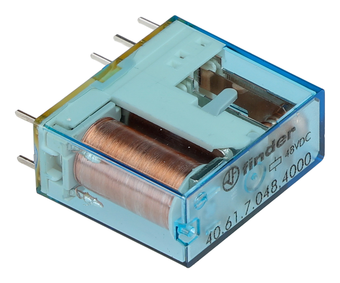 This is PCB Mount Power Relay 48V dc Coil 16A Switching Current SPDT manufactured by Finder. The manufacturer part number is 406170484000. It is capable of doing 100000 cycles in a lifetime . While it carries 125v dc of maximum DC switching voltage. The product complies with all safety standards, such as curus, eac. The product is available in pcb mount configuration. Robust coil power of 500mw. The product 40, is a highly preferred choice for users. It is integrated with 16a switching current. The coil voltage of the product is 48v dc. It consists of single coils. The contact is equipped with spdt configuration. Whereas, the minimum operating temperature of the product is -40°c. It has a maximum AC switching voltage of 400v ac. The product has 6kv isolation coil to contact. It has a maximum 30 a switching current AC . It has equipped with 1 poles. It has a maximum operating temperature of +85°c. The product is made from sturdy silver alloy materials.
