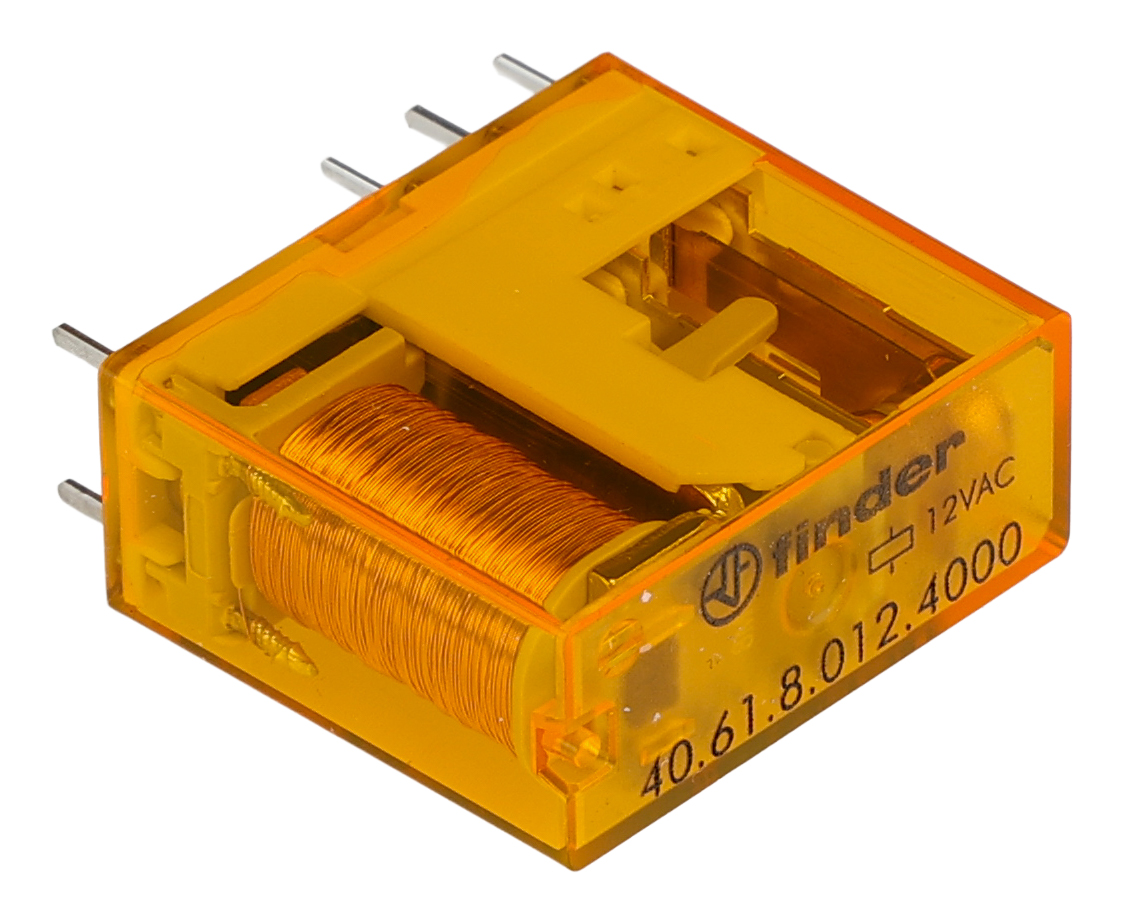 This is PCB Mount Power Relay 12V ac Coil 16A Switching Current SPDT manufactured by Finder. The manufacturer part number is 406180124000. It is capable of doing 100000 cycles in a lifetime . While it carries 125v dc of maximum DC switching voltage. The product complies with all safety standards, such as curus, eac. The product is available in pcb mount configuration. Robust coil power of 500mw. The product 40, is a highly preferred choice for users. It is integrated with 16a switching current. The coil voltage of the product is 12v ac. It consists of single coils. The contact is equipped with spdt configuration. Whereas, the minimum operating temperature of the product is -40°c. It has a maximum AC switching voltage of 400v ac. The product has 6kv isolation coil to contact. It has a maximum 30 a switching current AC . It has equipped with 1 poles. It has a maximum operating temperature of +85°c. The product is made from sturdy silver alloy materials.