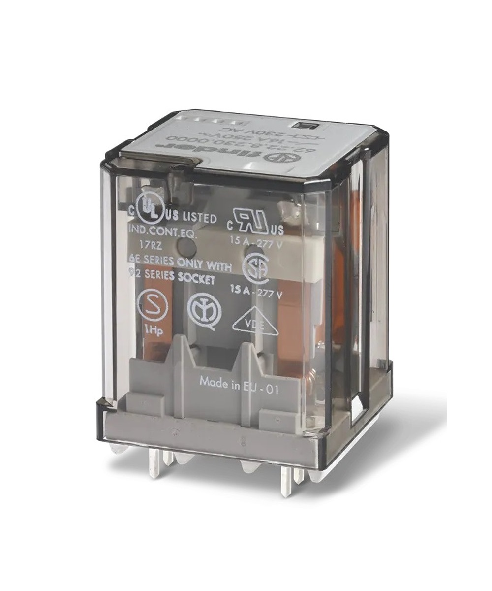 This is PCB Mount Power Relay 12V dc Coil 16A Switching Current 3PDT manufactured by Finder. The manufacturer part number is 622390124000. It is capable of doing 100000 cycles in a lifetime . While it carries 220v dc of maximum DC switching voltage. The product complies with all safety standards, such as curus, eac. The product is available in pcb mount configuration. Robust coil power of 2.2w. The product 62, is a highly preferred choice for users. It is integrated with 16a switching current. The coil voltage of the product is 12v dc. It consists of single coils. The contact is equipped with 3pdt configuration. Whereas, the minimum operating temperature of the product is -40°c. It has a maximum AC switching voltage of 400v ac. The product has 6kv isolation coil to contact. It has a maximum 120 a switching current AC . It has equipped with 3 poles. It has a maximum operating temperature of +70°c. The product is made from sturdy silver alloy materials.