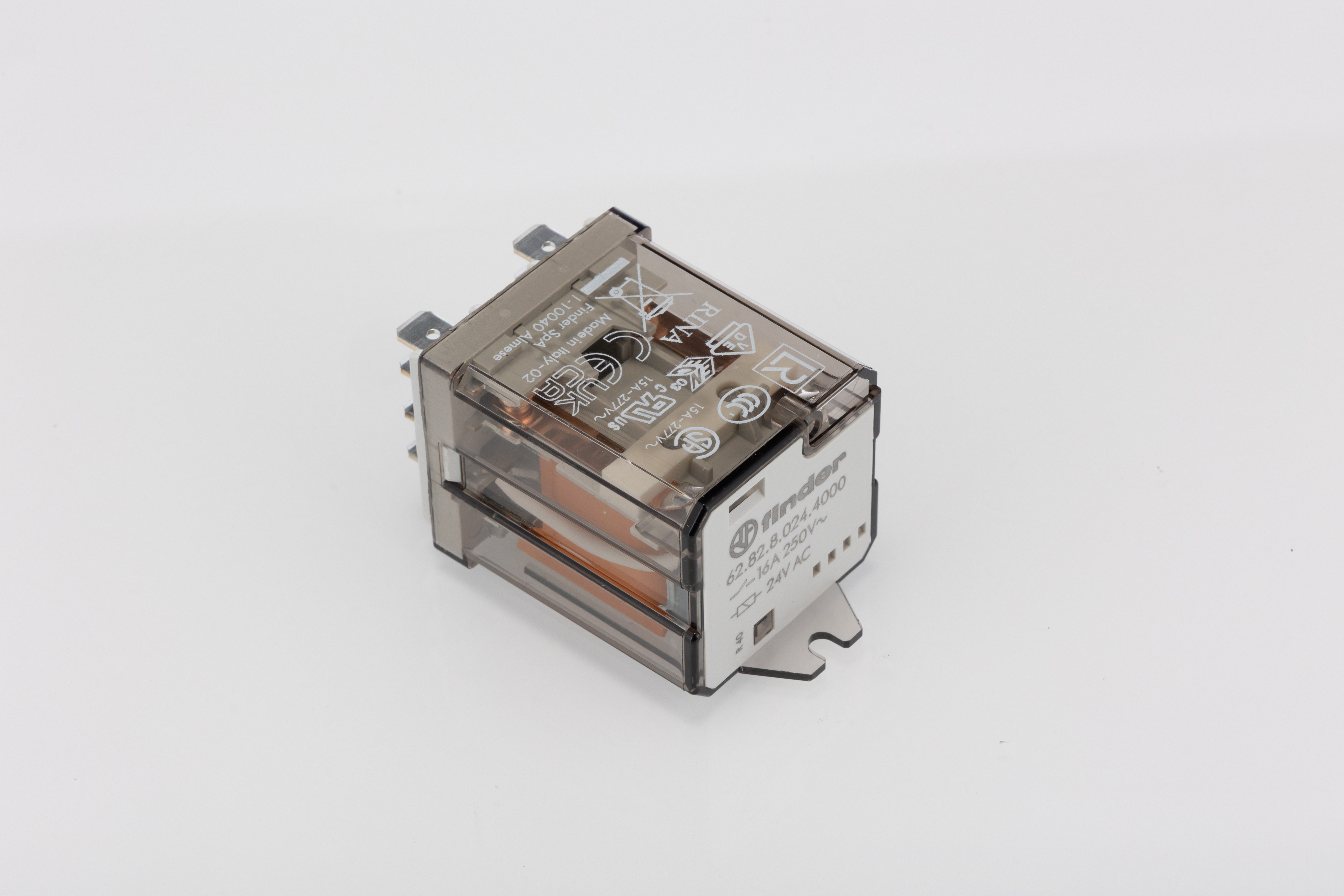 This is Flange Mount Power Relay 24V dc Coil 16A Switching Current DPDT manufactured by Finder. The manufacturer part number is 628280244000. It is capable of doing 100000 cycles in a lifetime . While it carries 220v dc of maximum DC switching voltage. The product complies with all safety standards, such as curus, eac. The product is available in flange mount configuration. Robust coil power of 2.2w. The product 62, is a highly preferred choice for users. It is integrated with 16a switching current. The coil voltage of the product is 24v ac. It consists of single coils. The contact is equipped with dpdt configuration. It has a maximum AC switching voltage of 400v ac. Whereas, the minimum operating temperature of the product is -40°c. The product has 6kv isolation coil to contact. It has a maximum 120 a switching current AC . It has equipped with 2 poles. It has a maximum operating temperature of +70°c. The product is made from sturdy silver alloy materials.
