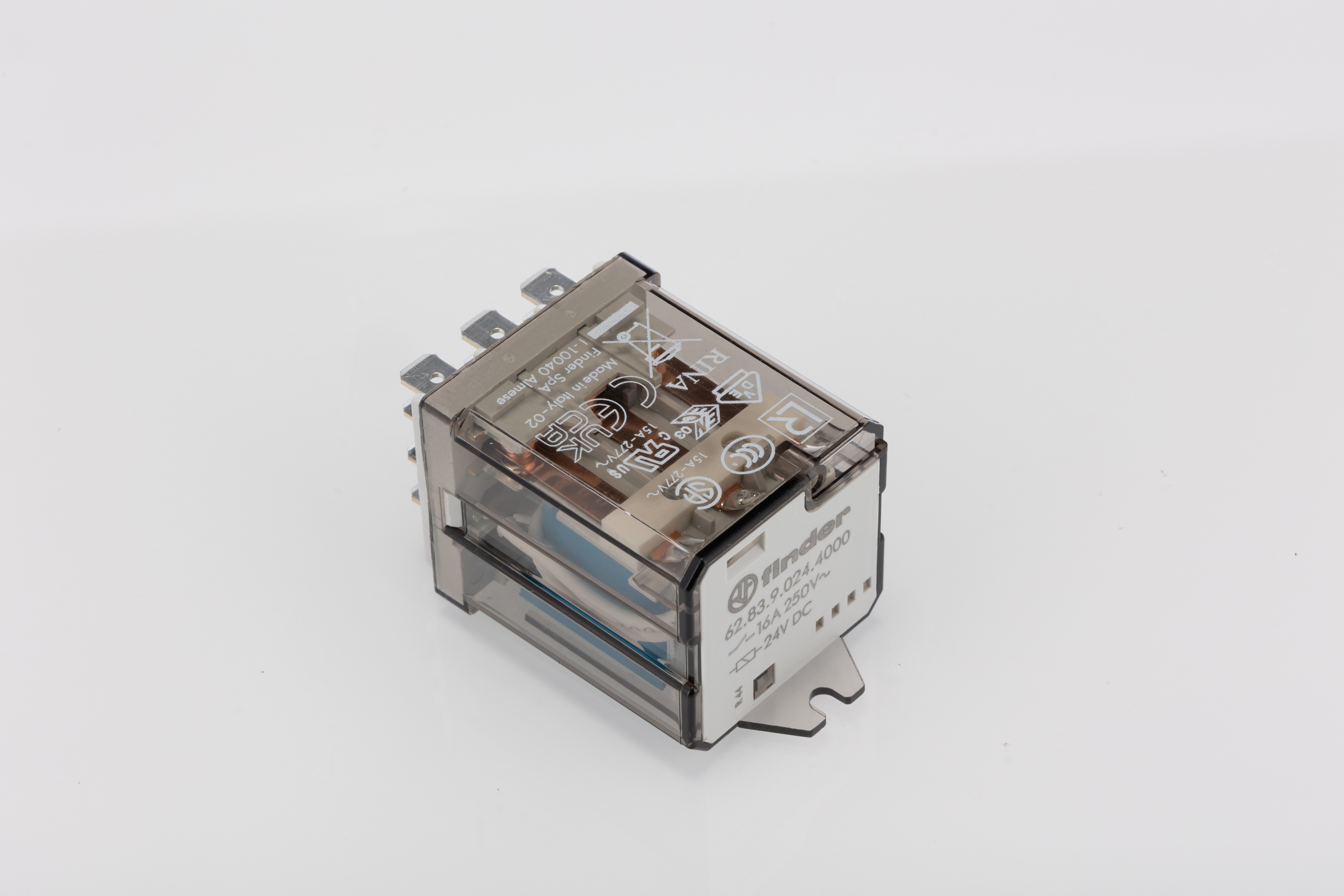 This is Flange Mount Power Relay 24V dc Coil 16A Switching Current 3PDT manufactured by Finder. The manufacturer part number is 628390244000. It is capable of doing 100000 cycles in a lifetime . While it carries 220v dc of maximum DC switching voltage. The product complies with all safety standards, such as curus, eac. The product is available in flange mount configuration. Robust coil power of 2.2w. The product 62, is a highly preferred choice for users. It is integrated with 16a switching current. The coil voltage of the product is 24v dc. It consists of single coils. The contact is equipped with 3pdt configuration. Whereas, the minimum operating temperature of the product is -40°c. It has a maximum AC switching voltage of 400v ac. The product has 6kv isolation coil to contact. It has a maximum 120 a switching current AC . It has equipped with 3 poles. It has a maximum operating temperature of +70°c. The product is made from sturdy silver alloy materials.