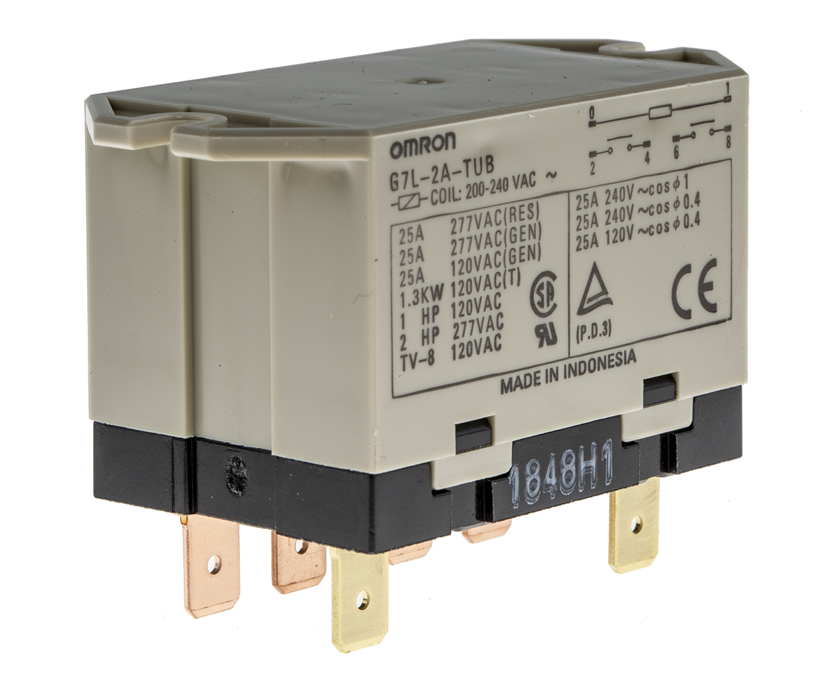 This is Plug In Power Relay DPST manufactured by Omron. The manufacturer part number is G7L-2A-TUB 200/240VAC. It has a maximum operating temperature of +60°c. The given dimensions of the product include 52.5 x 33.5 x 53mm. The product is available in plug in configuration. The product g7l, is a highly preferred choice for users. Its accurate length is 52.5mm. In addition, the height is 53mm. The product comes in 33.5mm depth. Whereas, the minimum operating temperature of the product is -25°c. The contact is equipped with dpst configuration. It has equipped with 2 poles. The terminal is a quick connect type. The product complies with all safety standards, such as ce.