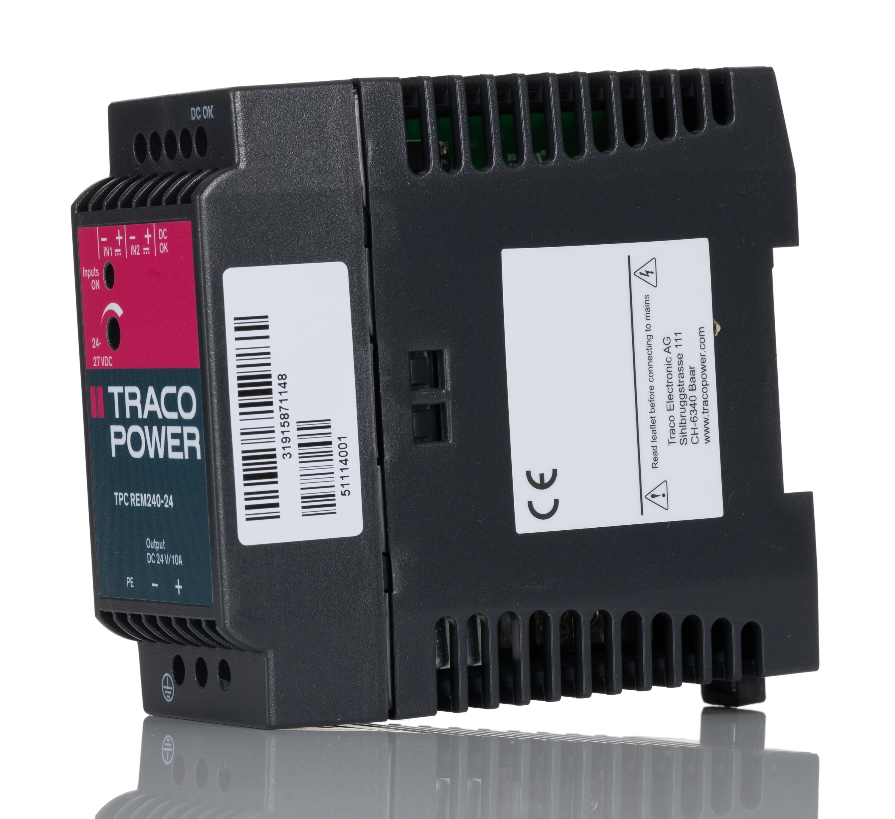 This is Redundancy module for use with TPC manufactured by TRACOPOWER. The manufacturer part number is TPC-REM240-24. It has a/an dc output voltage . It carries 10a output current. The product tpc, is a highly preferred choice for users. It is a type of redundancy module accessory. It has dc input voltage. The product is available in din rail style. Its input voltage is 24 → 28v dc. Features a 24v dc output voltage. The product is highly suitable for tpc.