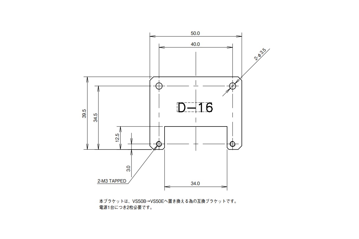 This is Mounting Bracket for use with VS50E manufactured by TDK-Lambda. The manufacturer part number is D-16. The product is highly suitable for vs50e. It is a type of mounting bracket accessory.