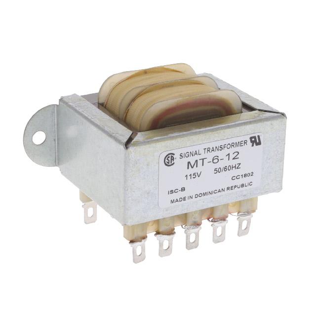 This is manufactured by Signal Transformer. The manufacturer part number is MT-6-12. As well as [Secondary Wing(s)]. It is assigned with possible HTSUS value of 8504.31.4035. The product is rohs3 compliant. Moreover, it has solder, quick connect terminal style. The maximum product's output current is 1.75a, 210ma. Features primary voltage 115v. It has the maximum seated height of 49.80mm. It comes in laminated core configuration. Features single. In addition, it is reach unaffected. Center Tap - yes. The signal transformer's product offers user-desired applications. Full load voltage - secondary includes 5v, 12v. The product's diameters include 82.60mm l x 44.30mm w. It has a long 18 weeks standard lead time. 2500vrms of isolation voltage. Its typical moisture sensitivity level is not applicable. The product is available in chassis mount configuration. The typical product's weight is 1.1 lbs (499 g). The product mt, is a highly preferred choice for users. In addition, bulk is the available packaging type of the product. The maximum power of the product is 6va. The product is designated with the ear99 code number.