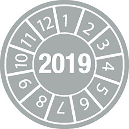 This is Adhesive Inspection Date Labels 2019. Quantity: 250 manufactured by Brady. The manufacturer part number is 834092. Its text message shows 2019 . Its diameter is 25mm. Its text colour is white . It is designed with an attractive grey colour background . The quantity of the pack is 250 . It has a/an adhesive type fixing .