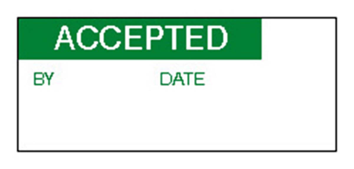 This is Pre-Printed Adhesive Label Accepted. Quantity: 140 manufactured by RS Pro. The manufacturer part number is 758-7999. Its text message shows accepted . It is designed with an attractive white colour background . Its text colour is green . Furthermore, the product is 15mm wide. Its accurate length is 38mm. The quantity of the pack is 140 . It has a/an adhesive type fixing .