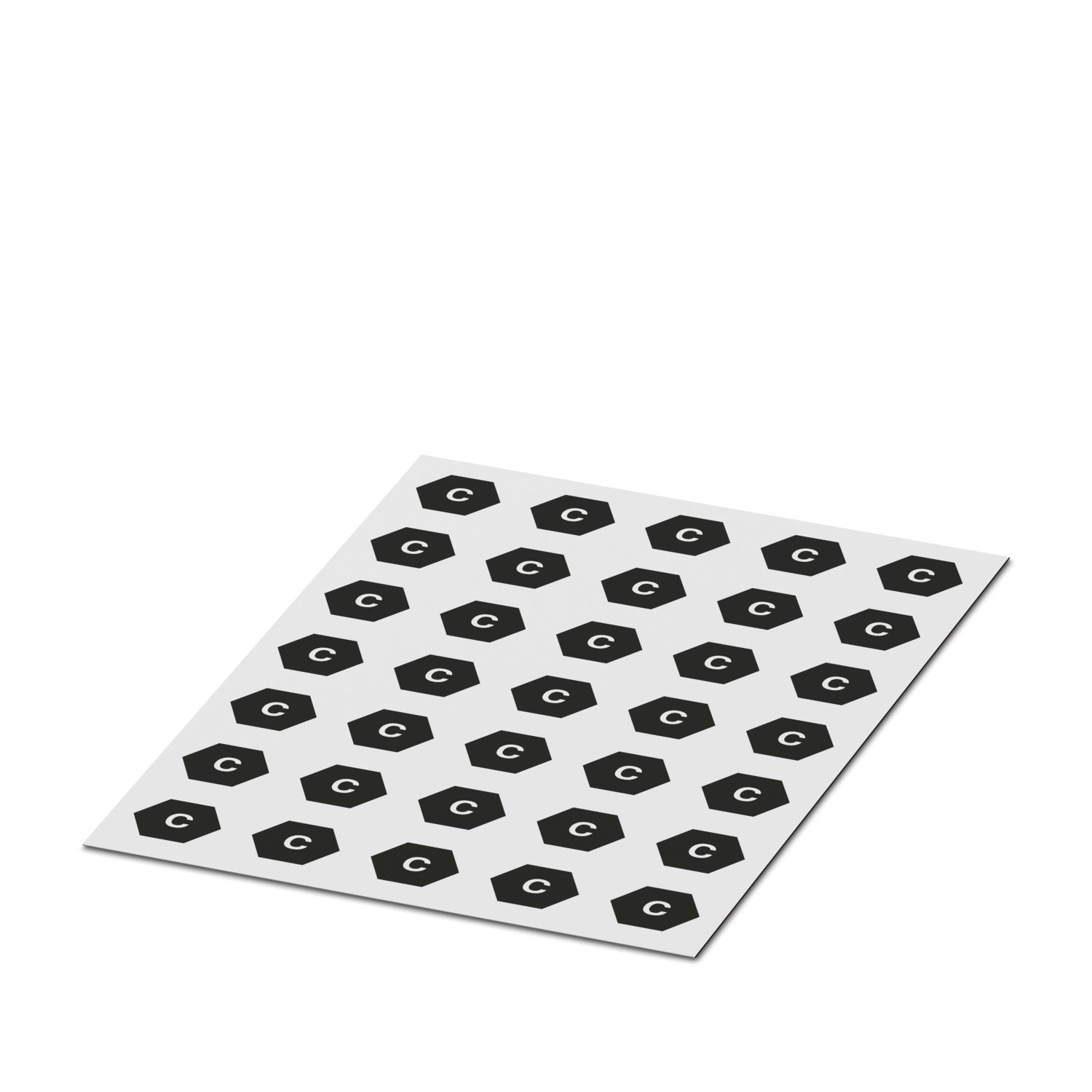 This is Adhesive Pre-Printed Label-C-. Quantity: 1Sheets manufactured by Phoenix Contact. The manufacturer part number is 1309766. Its text message shows c . Its diameter is 15.2mm. Its text colour is white . It is designed with an attractive black colour background . The quantity of the pack is 1sheets . It has a/an adhesive type fixing .