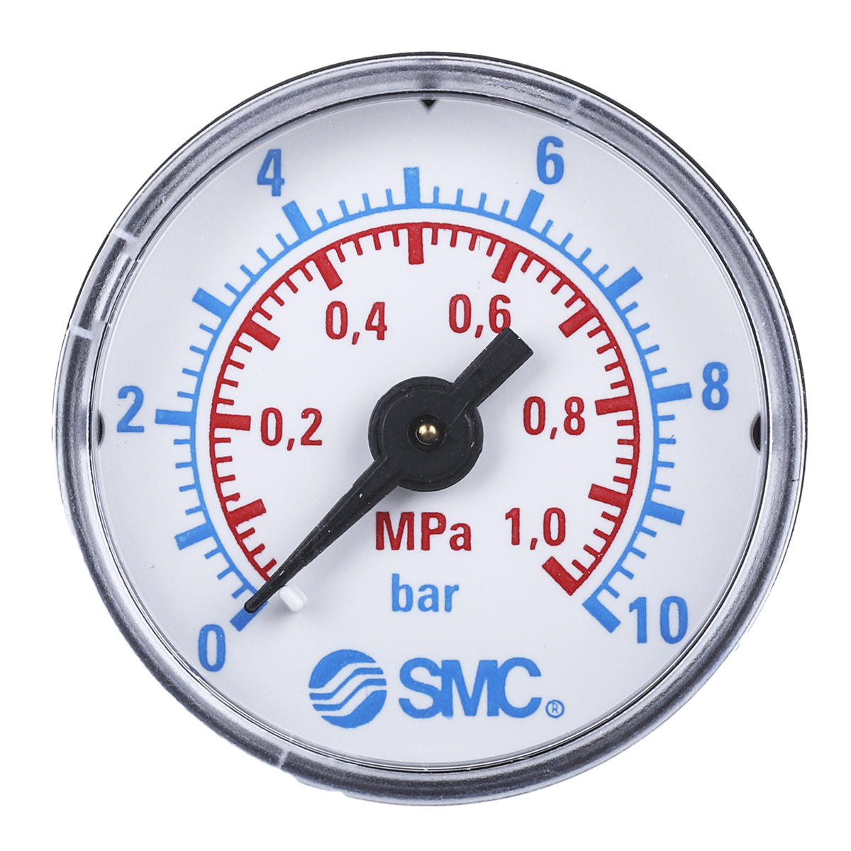 This is Analogue Positive Pressure Gauge Back Entry 10bar Connection Size R 1/8 manufactured by SMC. The manufacturer part number is K8-10-40. It features a remarkable analogue display. The product is available in back entry configuration. Moreover, its gauge outside diameter is approximately 40mm . Moreover, it has a maximum 10bar pressure measurement . It has a standard g 1/8 size connection . Additionally, it has a minimum 0bar pressure measurement .