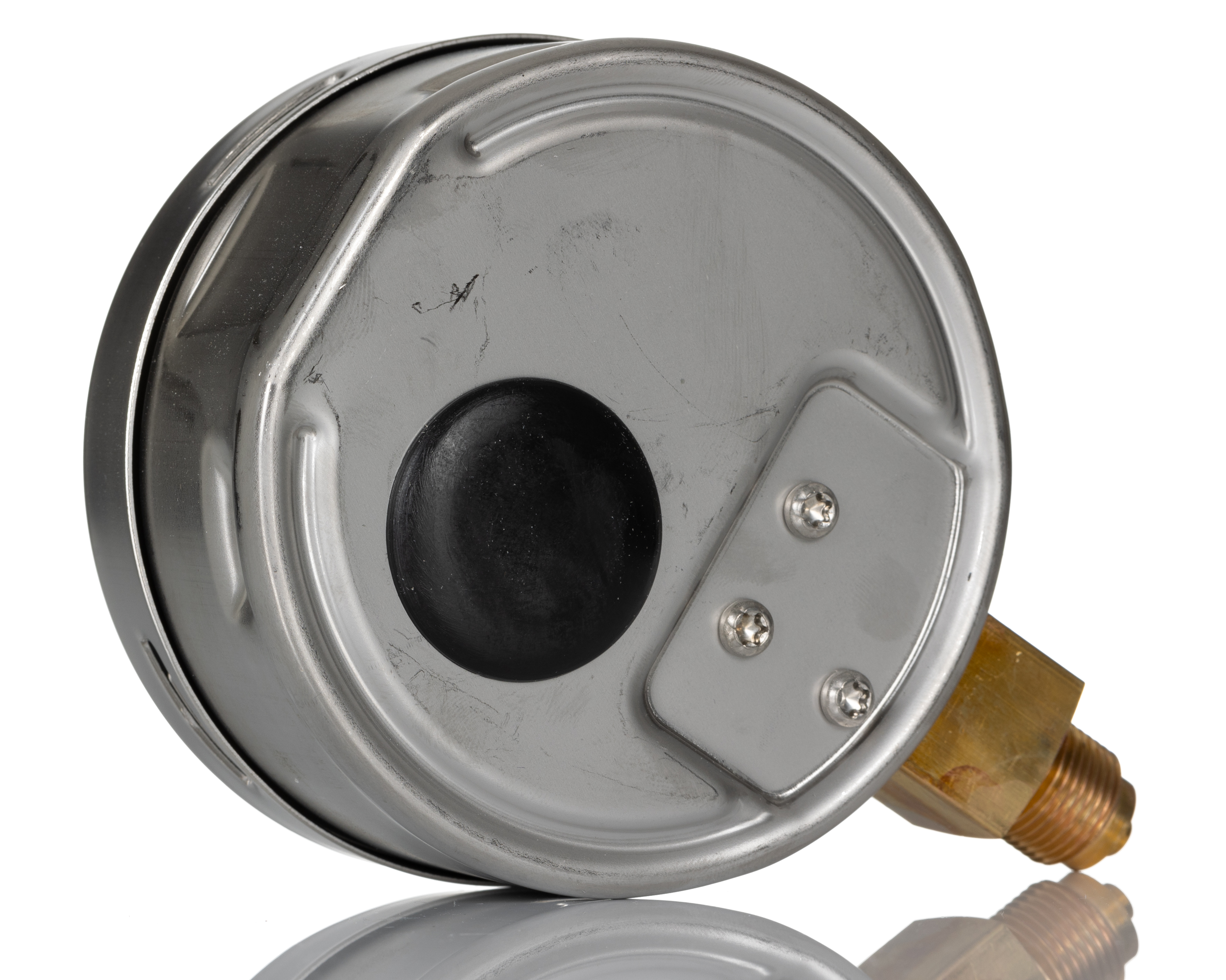 This is Analogue Vacuum Gauge Maximum Pressure Measurement 0bar Gauge Outside Diameter 100mm Connection Size BSP G 3/8 manufactured by RS Pro. The manufacturer part number is 188-986. It features a remarkable analogue display. The product is available in bottom entry configuration. Moreover, its gauge outside diameter is approximately 100mm . Moreover, it has a maximum 0bar pressure measurement . It has a standard bsp 3/8 size connection . The casing is constructed from highly stable stainless steel material. Whereas, the minimum operating temperature of the product is -40°c. It has a maximum operating temperature of +60°c. Additionally, it has a minimum -1bar pressure measurement .
