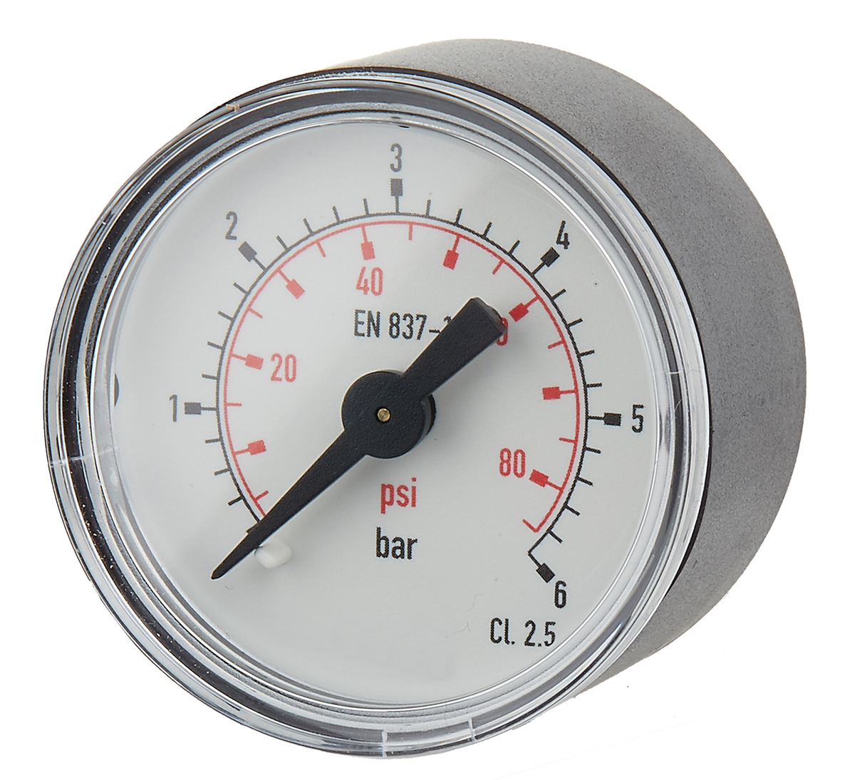 This is Analogue Positive Pressure Gauge Back Entry 6bar Connection Size R 1/8 manufactured by RS Pro. The manufacturer part number is 405-5537. In addition, it is offered with ± 2.5% best accuracy . It features a remarkable analogue display. The product is available in back entry configuration. Moreover, its gauge outside diameter is approximately 40mm . Moreover, it has a maximum 6bar pressure measurement . It has a standard r 1/8 size connection . The casing is constructed from highly stable black abs plastic material. Pressure range includes 0 →6bar. Whereas, the minimum operating temperature of the product is -40°c. It has a maximum operating temperature of 60°c. Additionally, it has a minimum 0bar pressure measurement .