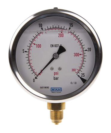 The pressure gauge’s robust instrument is capable of measuring pressures up to 25 bar, with a connection size of G 3/8, making it suits a wide range of industrial applications, such as: