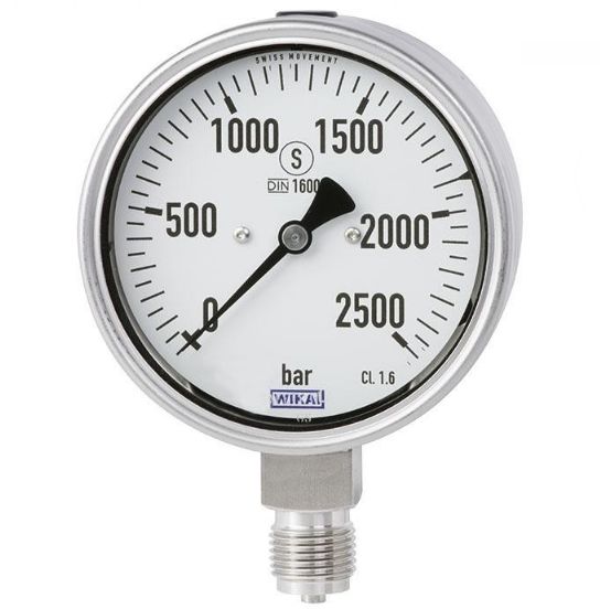 This is G 1/2 Dial Pressure Gauge 2500bar 0bar min. manufactured by WIKA. The manufacturer part number is 48805544. It features a remarkable analogue display. The product is available in bottom entry configuration. Moreover, its gauge outside diameter is approximately 160mm . The product pg23hp-s, is a highly preferred choice for users. Moreover, it has a maximum 2500bar pressure measurement . It has a standard g 1/2 size connection . Additionally, it has a minimum 0bar pressure measurement .