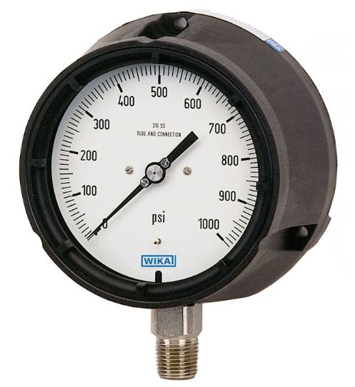 This is NPT 1/2 Dial Pressure Gauge 100psi 0psi min. manufactured by WIKA. The manufacturer part number is 9836858. It features a remarkable analogue display. The product is available in bottom entry configuration. Moreover, its gauge outside diameter is approximately 4.5in . The product 2xx.34, is a highly preferred choice for users. Moreover, it has a maximum 100psi pressure measurement . It has a standard npt 1/2 size connection . Additionally, it has a minimum 0psi pressure measurement .