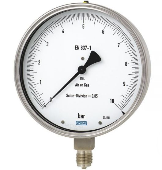 This is G 1/2 Dial Pressure Gauge 20bar 0bar min. manufactured by WIKA. The manufacturer part number is 48735112. It features a remarkable analogue display. The product is available in bottom entry configuration. Moreover, its gauge outside diameter is approximately 160mm . The product 33x.50, is a highly preferred choice for users. Moreover, it has a maximum 20bar pressure measurement . It has a standard g 1/2 size connection . Additionally, it has a minimum 0bar pressure measurement .