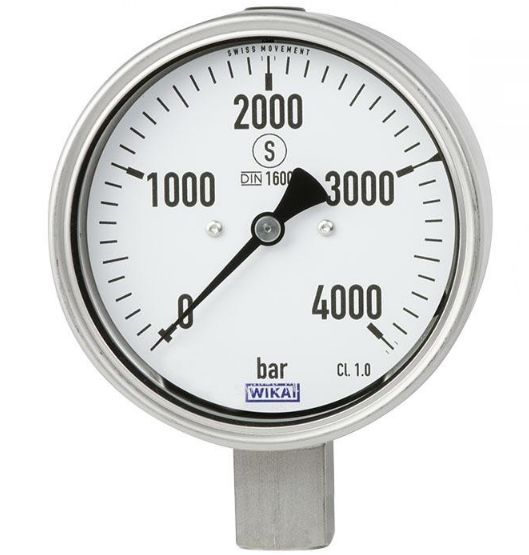 This is 9/16-18 UNF Female Dial Pressure Gauge 3000bar 0bar min. manufactured by WIKA. The manufacturer part number is 48771398. It features a remarkable analogue display. The product is available in bottom entry configuration. Moreover, its gauge outside diameter is approximately 160mm . The product pg23hp-p, is a highly preferred choice for users. Moreover, it has a maximum 3000bar pressure measurement . It has a standard 9/16-18 unf female size connection . Additionally, it has a minimum 0bar pressure measurement .