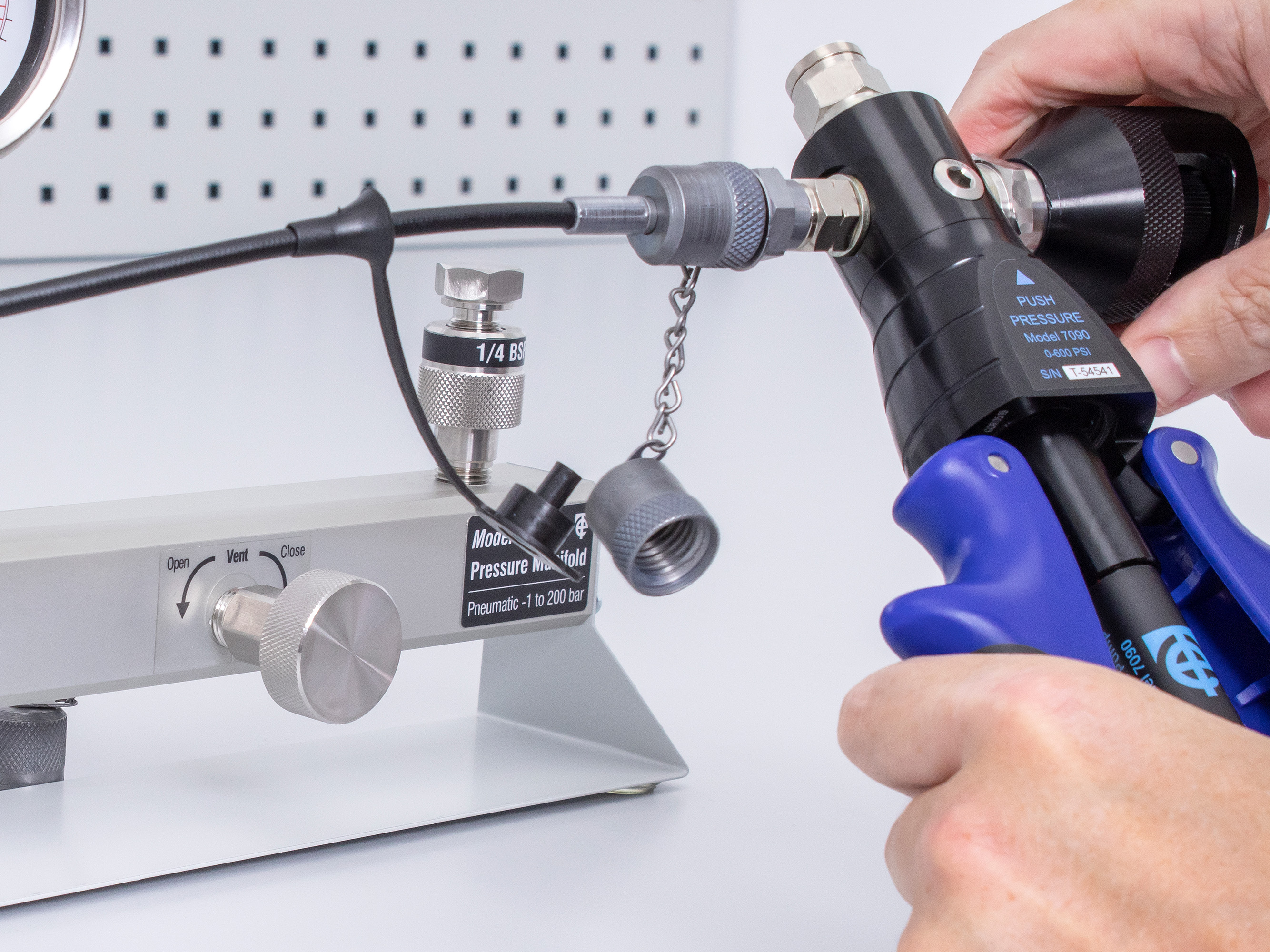 This is Time Electronic Pneumatic Pressure Pump Kit 40bar manufactured by Time Electronics. The manufacturer part number is 7090. It includes a pneumatic type pump . It is available with 1/4 npt, 1/8 npt of pressure connection . 0.95bar is the the minimum pressure of the product . The typical product's weight is 910g. It features maximum pressure of 40bar.