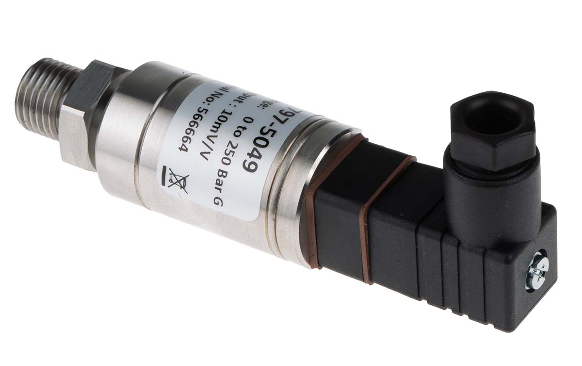 This is Gauge Pressure Sensor maximum pressure reading 250bar 3 → 12 V dc BSP 1/4 manufactured by RS Pro. The manufacturer part number is 797-5049. The product is available in threaded configuration. It is IP rated with ip65. It has provided with din 43650 type c electrical connection. Furthermore, it has avoltage output. Whereas, its maximum pressure reading is 250bar . The product also features robust stainless steel housing material. In addition, it has a minimum 0bar pressure reading . In addition, it has a/an relative type pressure reading . Whereas, the minimum operating temperature of the product is -20°c. It includes a standard g1/4 process connection . Features 3 → 12 v dc supply voltage. It has a steady 0 → 100 mv analogue output . It has a maximum operating temperature of +135°c. It is created for measuring medias like air, gas, hydraulic fluid, liquid, water . It provides high accuracy of ±0.25 %.