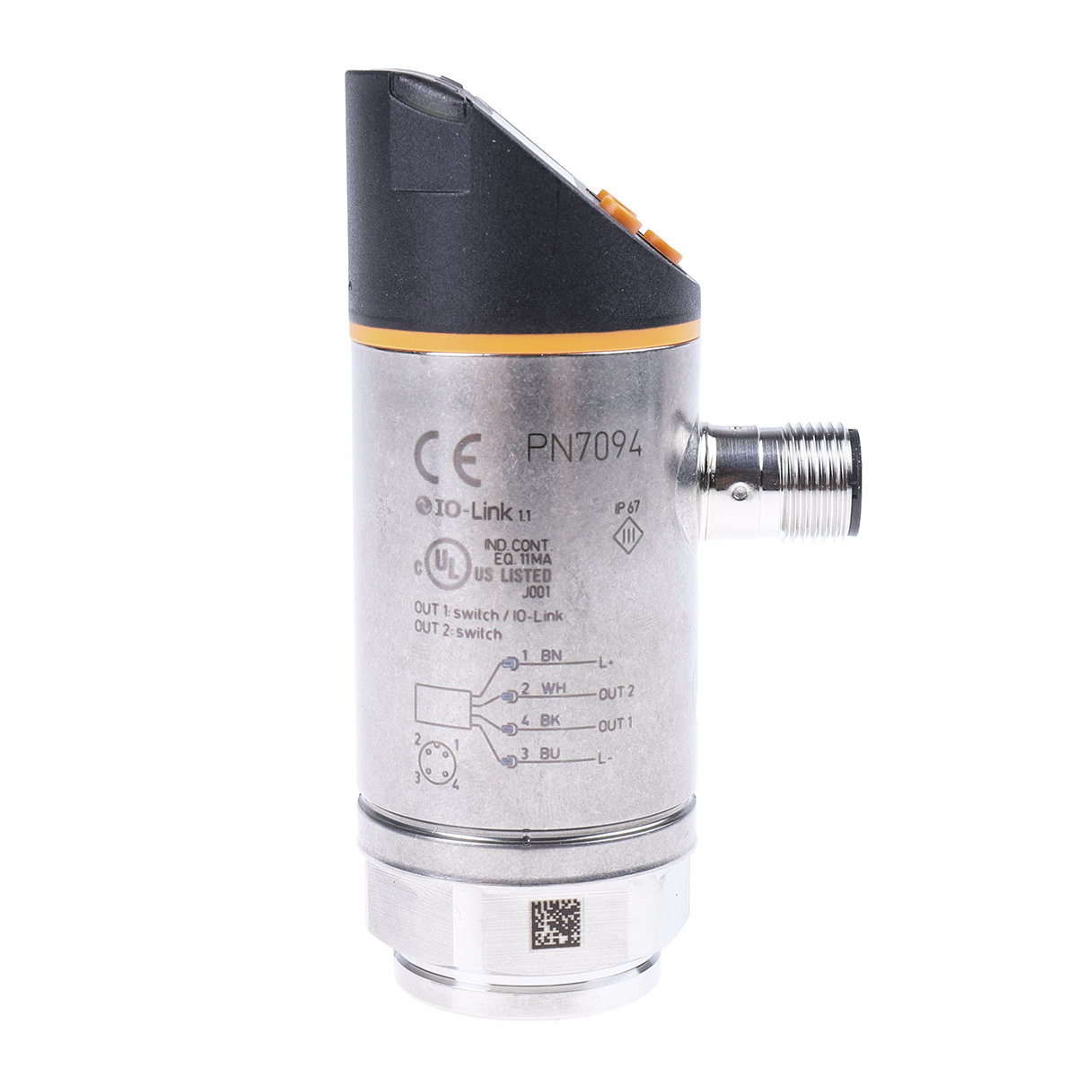 This is Relative Pressure Sensor IO-Link 10bar Max Pressure Reading 18 → 30 V dc G1/4 IP65 IP67 manufactured by ifm electronic. The manufacturer part number is PN7094. It has provided with m12 connector electrical connection. It is tailored with io-link communication protocol . It also carries 150 ma @ +60 °c, 200 ma @ +60 °c, 250 ma @ +40 °c maximum current. It is IP rated with ip65, ip67. Features 18 → 30 v dc supply voltage. Furthermore, it has a2x pnp/npn-no/nc output. Whereas, its maximum pressure reading is 10bar . The product also features robust pbt gf20, pbt+pc gf30, pc, stainless steel housing material. In addition, it has a minimum -1bar pressure reading . In addition, it has a/an relative type pressure reading . It is created for measuring medias like fluid . It includes a standard g1/4 process connection . A bespoke product is io-link interface. It responds within <3 (minimum switching output) ms. It has a maximum operating temperature of +80°c. Whereas, the minimum operating temperature of the product is -25°c. It provides high accuracy of ±0.5 %.