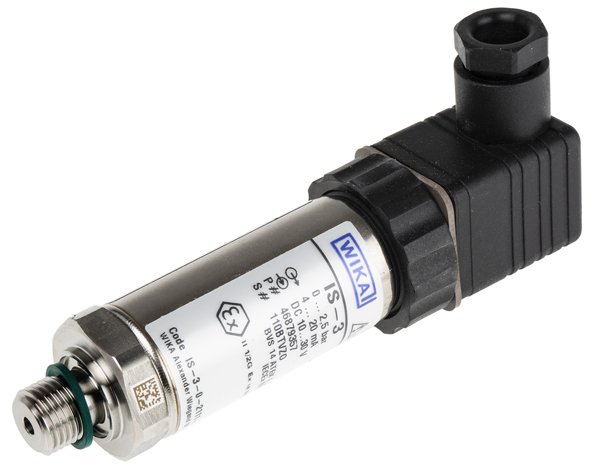 This is ATEX IECEx for Gas Liquid Pressure Sensor 2.5bar Max Pressure Reading 10 → 30 V dc G1/4 IP65 manufactured by WIKA. The manufacturer part number is 46879357. The product is certified with atex, iecex hazardous area certification. It is IP rated with ip65. The product is-3, is a highly preferred choice for users. It has provided with din 175301-803 a electrical connection. Furthermore, it has aanalogue output. It has a steady 4 → 20 ma analogue output . The product also features robust stainless steel housing material. In addition, it has a minimum 0bar pressure reading . It is created for measuring medias like gas, liquid . Whereas, the minimum operating temperature of the product is -20°c. It includes a standard g1/4 process connection . Features 10 → 30 v dc supply voltage. It responds within < 2 ms. Whereas, its maximum pressure reading is 2.5bar . It has a maximum operating temperature of +80°c. It provides high accuracy of 0.5 %.