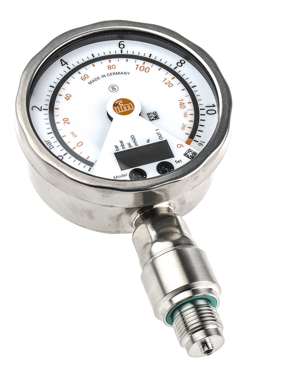 This is Relative Pressure Sensor 10bar Max Pressure Reading 18 → 32 V dc G1/2 IP67 IP69K manufactured by ifm electronic. The manufacturer part number is PG2454. Whereas, the minimum operating temperature of the product is -20°c. It also carries 250 ma maximum current. It is IP rated with ip67, ip69k. It has provided with m12 connector electrical connection. Furthermore, it has aanalogue + pnp-no/nc programmable output. Whereas, its maximum pressure reading is 10bar . The product also features robust stainless steel housing material. In addition, it has a minimum -1bar pressure reading . In addition, it has a/an relative type pressure reading . Features 18 → 32 v dc supply voltage. It includes a standard g1/2 process connection . It has a steady 4 → 20 ma analogue output . It responds within 9 ms, 28 ms. It has a maximum operating temperature of +80°c. It is created for measuring medias like gas, liquid . It provides high accuracy of ±0.5 %.