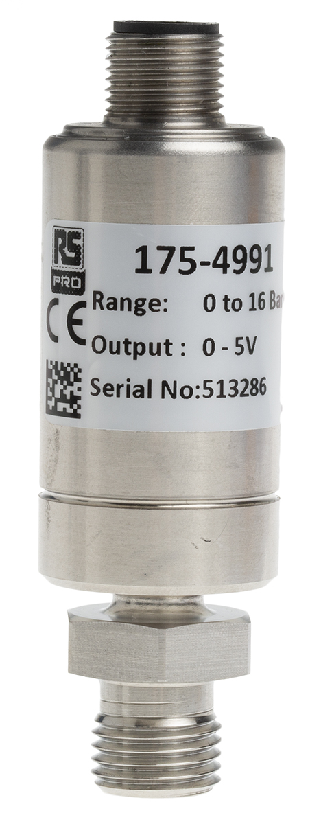 This is RS PRO Pressure Sensor 0bar Min 16bar Max Analogue Output Relative Reading manufactured by Sensata/Cynergy 3. The manufacturer part number is RS_175-4991. The product is available in threaded configuration. The product ips, is a highly preferred choice for users. It has provided with m12 4-pin electrical connection. Furthermore, it has aanalogue output. Whereas, its maximum pressure reading is 16bar . The product also features robust stainless steel housing material. In addition, it has a minimum 0bar pressure reading . In addition, it has a/an relative type pressure reading . Features 9 → 32 v dc supply voltage. Whereas, the minimum operating temperature of the product is -20°c. It includes a standard g1/4 process connection . It has a steady 0 → 5 v analogue output . It has a maximum operating temperature of +80°c. It provides high accuracy of ±0.25 %.