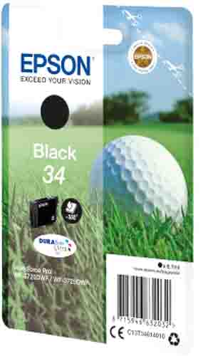 This is Black Ink Cartridge manufactured by Epson. The manufacturer part number is C13T34614010. Moreover, it has a/an c13t34614010 cartridge model . Moreover, it is for use with epson printer brand . It has a cartridge ink format . It has 34 cartridges per package . It has a decent black colour. It has 350 approximate page yield .