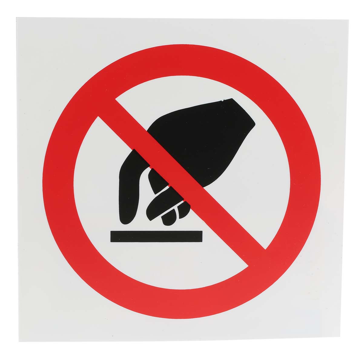 This is Plastic Do Not Touch Prohibition Sign None None manufactured by RS Pro. The manufacturer part number is 857-8699. Additionally, it is self-adhesive no . It has a sign . It has a decent black/red/white colour. The product is made from highly stable and reliable plastic. In addition, the height is 200 mm. Furthermore, the product is 200mm wide. It contains 1 item per package . However, its text language is none . It includes a symbol . In addition, it displays do not touch sign description .